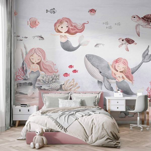Παιχνιδιάρικες γοργόνες υποβρύχια με φύκια, μέδουσες και ψάρια