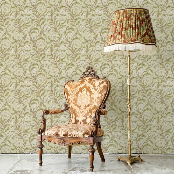 Δαμασκηνό με φυτικά σπειροειδή μοτίβα, παλέτα χρωμάτων ελιάς-ώχρας