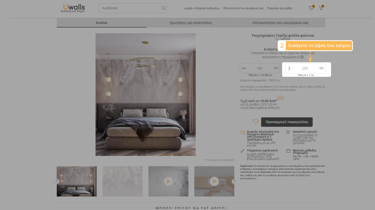 1. Πληκτρολογήστε το πλάτος του τοίχου