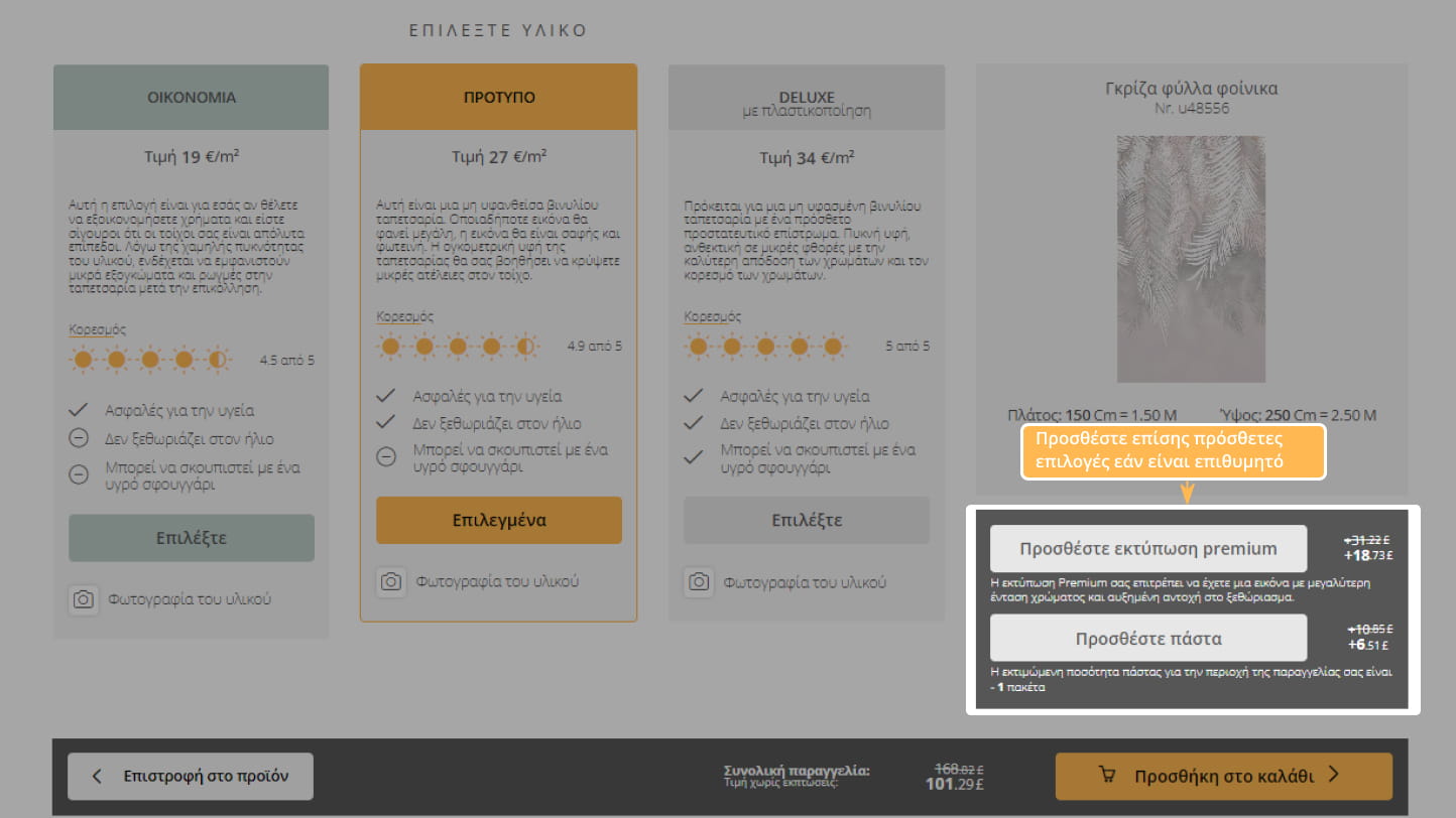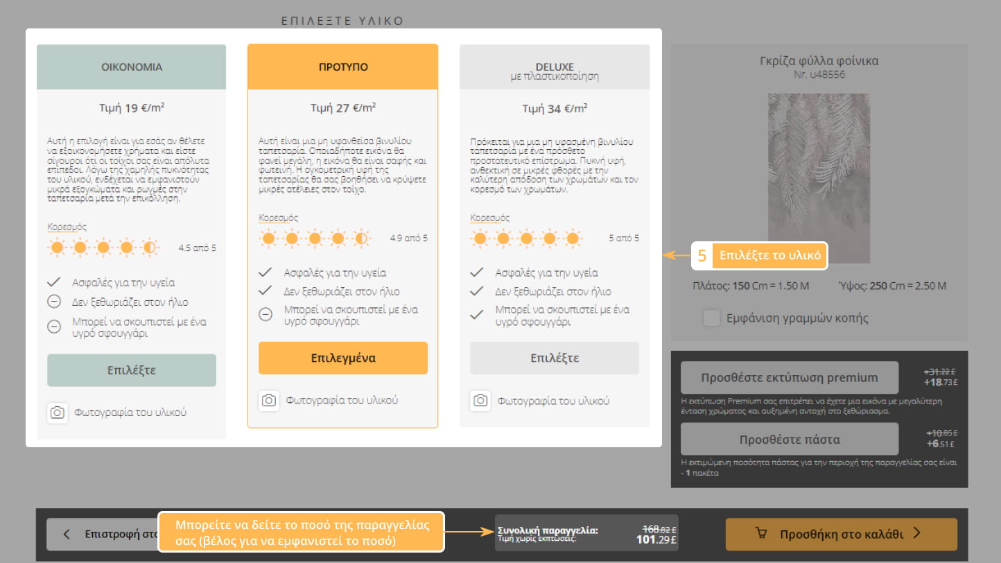 5. Επιλέξτε το υλικό, προσθέστε επίσης πρόσθετες επιλογές εάν είναι επιθυμητό.