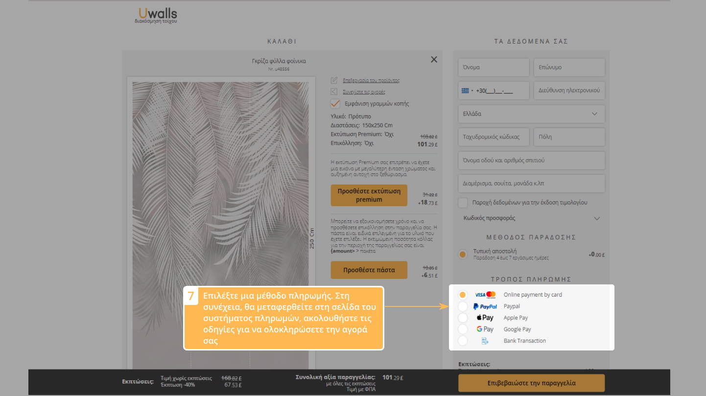 Μπορείτε να δείτε το ποσό της παραγγελίας σας (βέλος για να εμφανιστεί το ποσό)