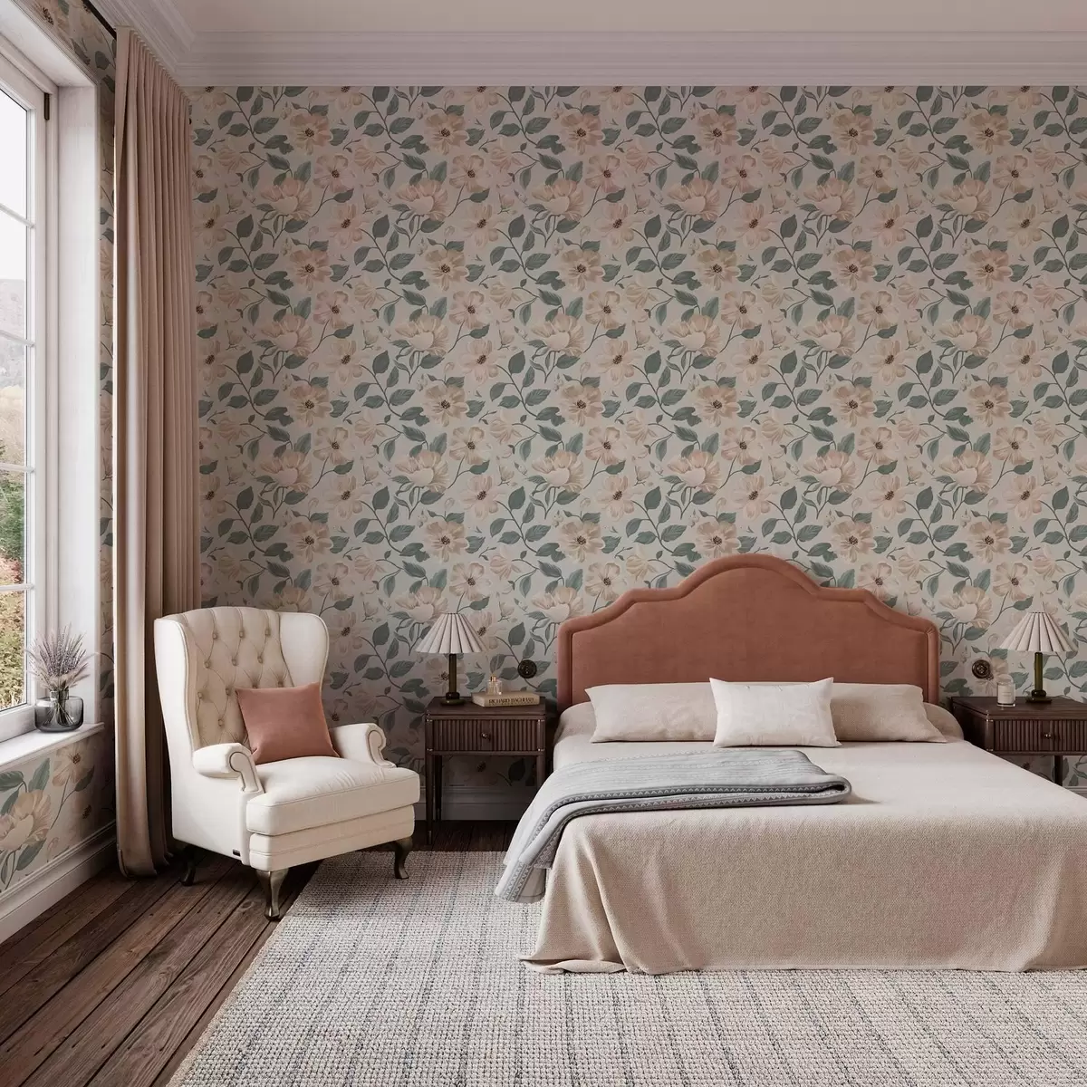Ταπετσαρία Λεπτή σύνθεση λουλουδιών σε παστέλ χρώματα Nr. a00043