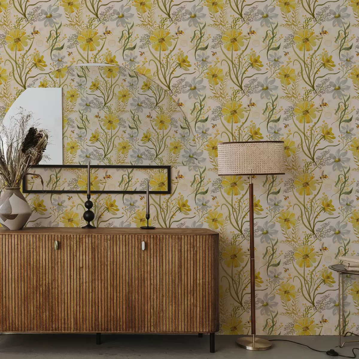 Ταπετσαρία Φωτεινή floral σύνθεση σε κίτρινο χρώμα Nr. a00045