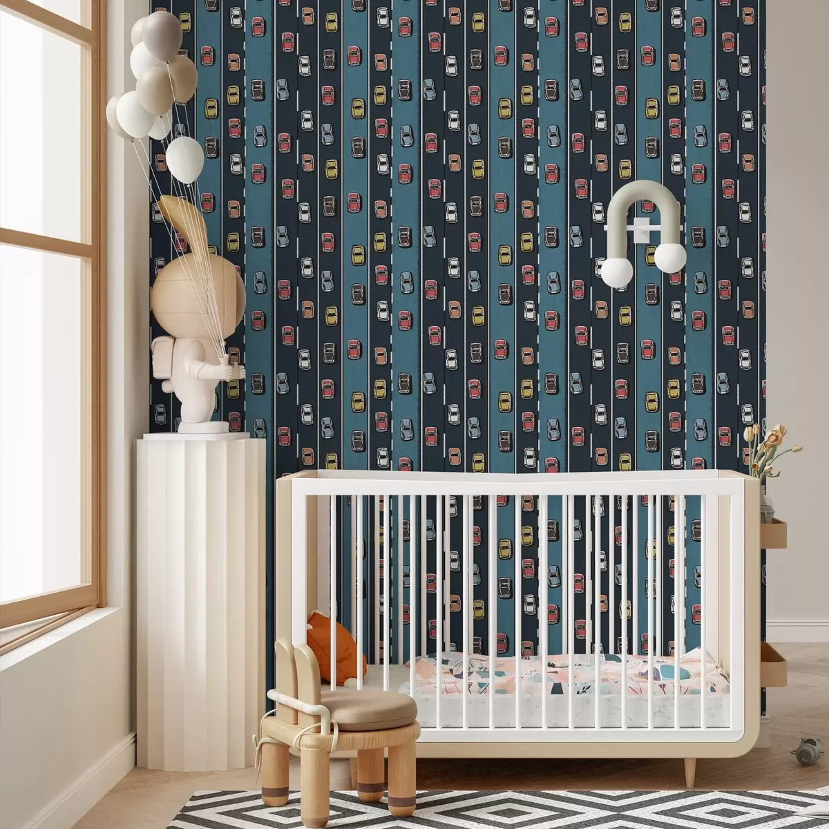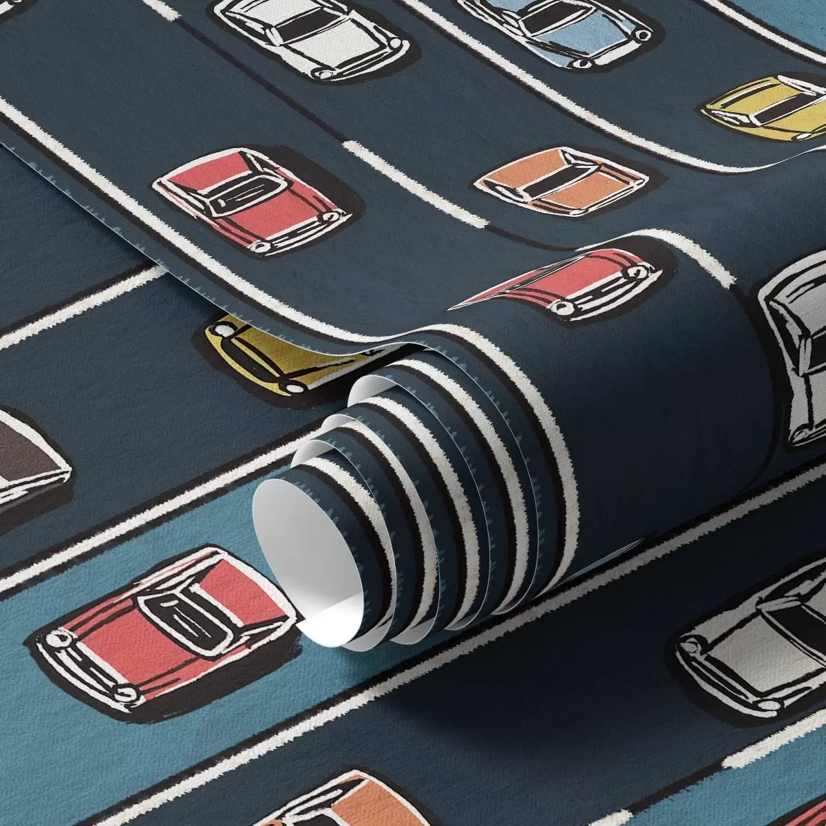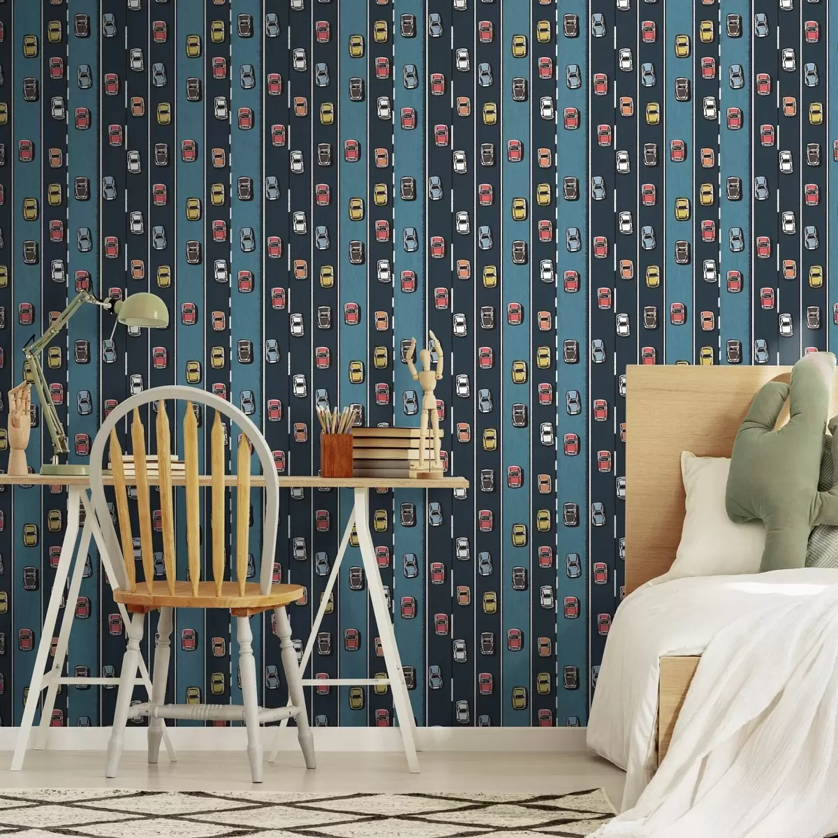 Ταπετσαρία Ρετρό αυτοκίνητο σε ναυτικό μπλε δρόμο σε στυλ της δεκαετίας του 60 Nr. a00118