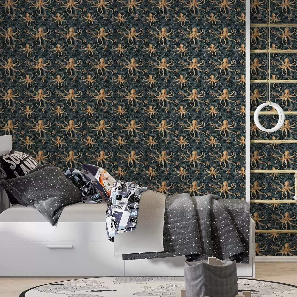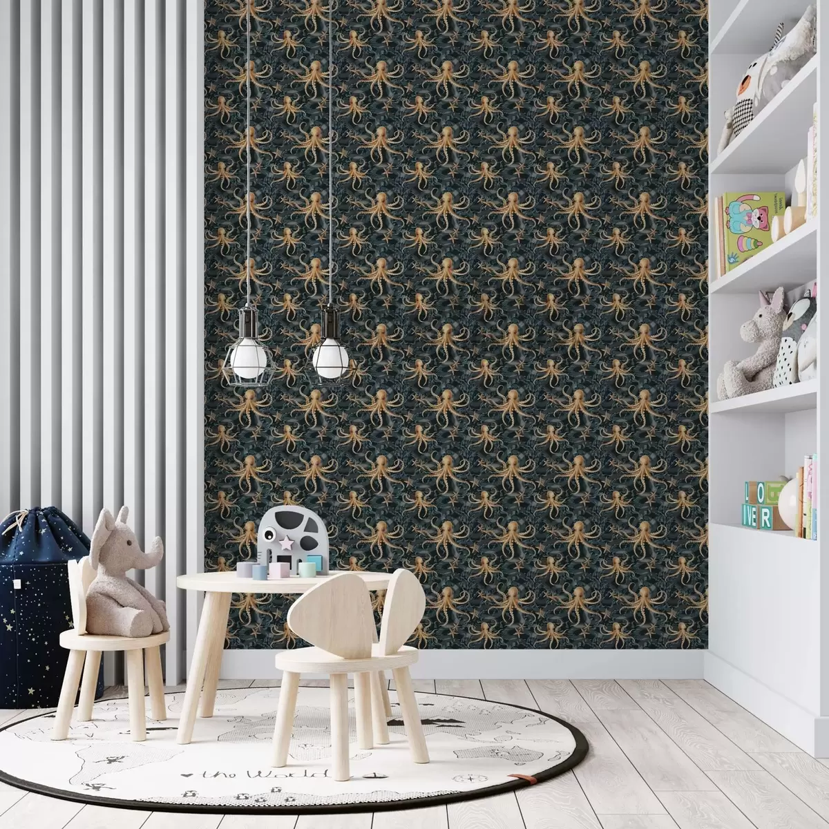 Ταπετσαρία Χταπόδια σε σκούρο μπλε φόντο Nr. a00120v1