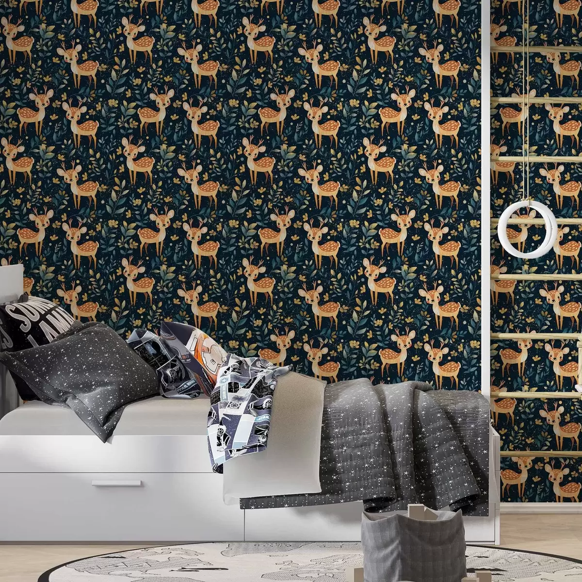Ταπετσαρία Ελάφι σε ένα σκοτεινό δάσος με κίτρινα φύλλα Nr. a00124