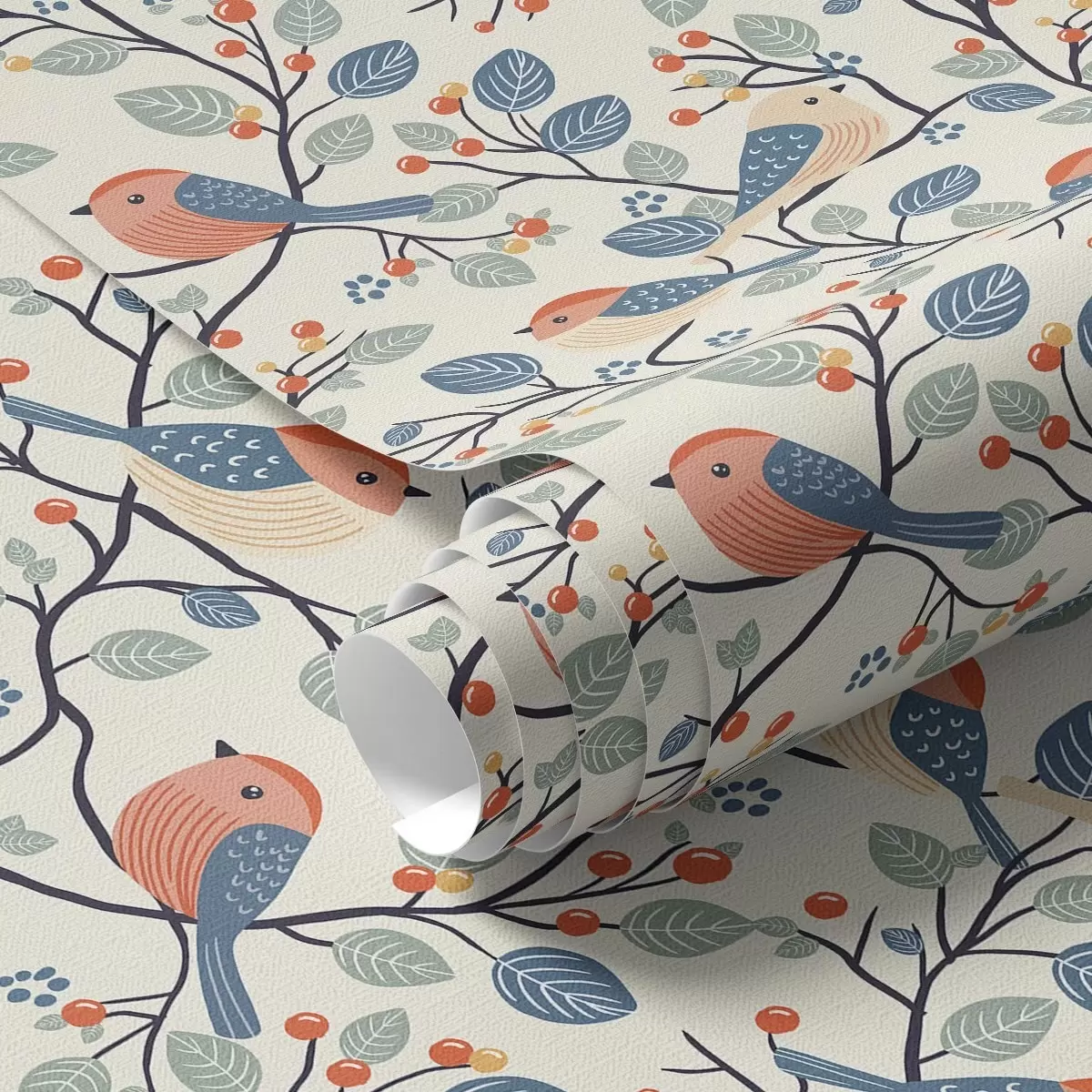 Ταπετσαρία Πουλιά σε κλαδιά και μούρα σε ζεστά χρώματα Nr. a00128v1