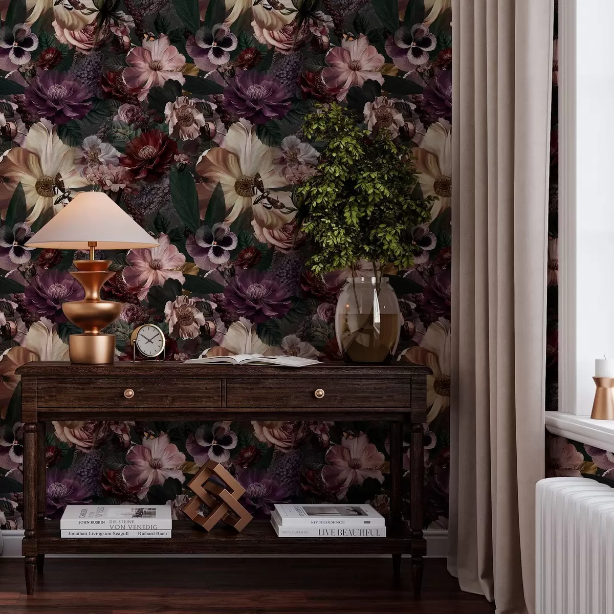 Ταπετσαρία Φλοράλ εκτύπωση τέχνης σε σκούρα χρώματα Nr. a00147