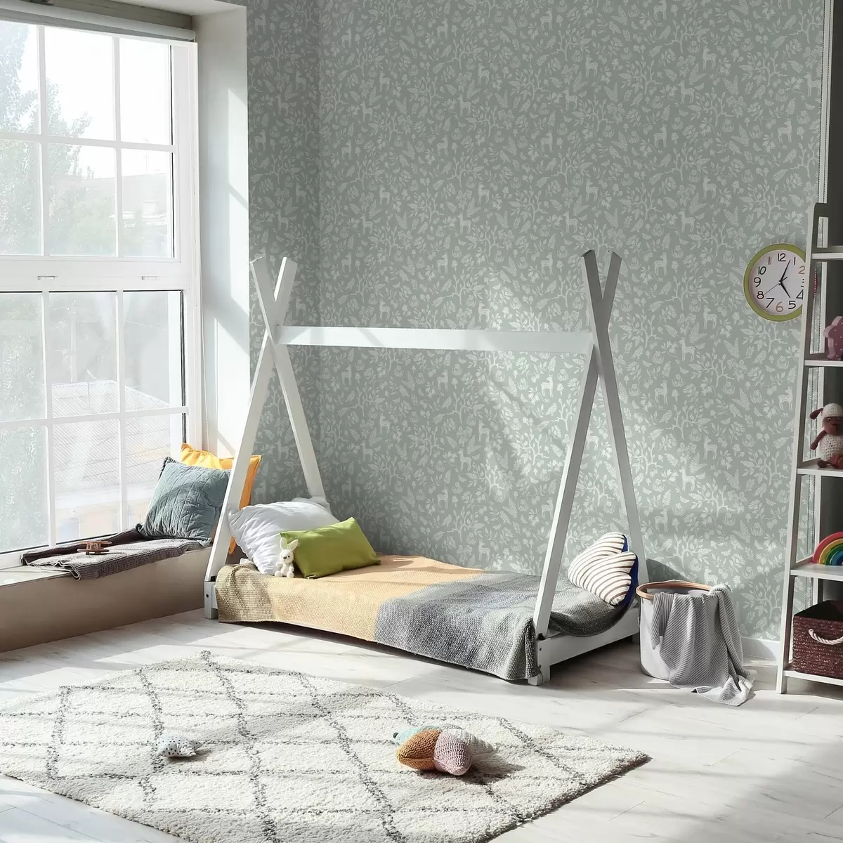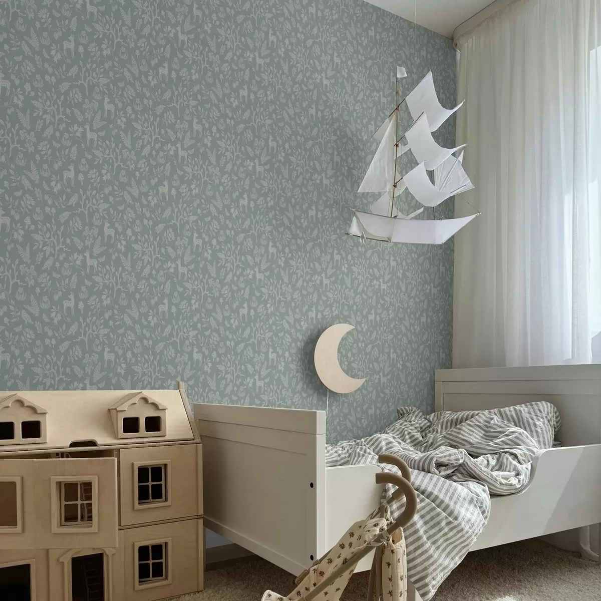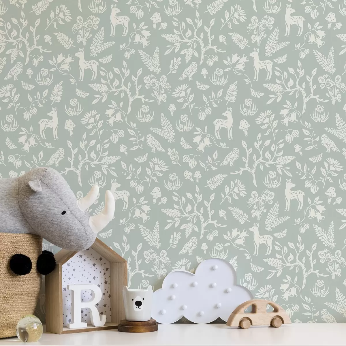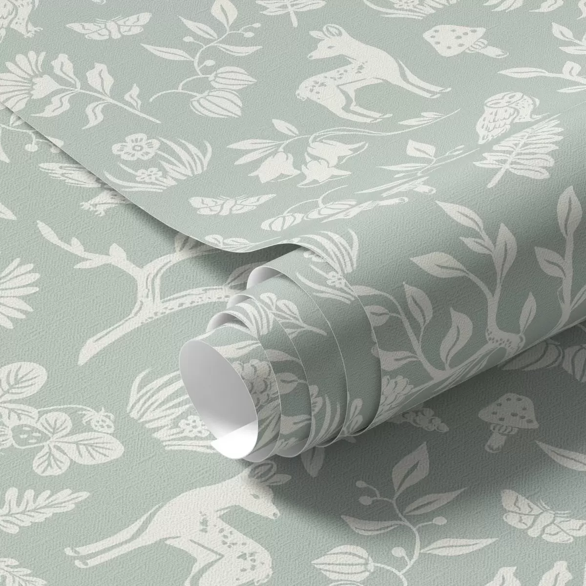 Ταπετσαρία Σκανδιναβικά ζώα και φυτά σε φόντο μέντας Nr. a00149