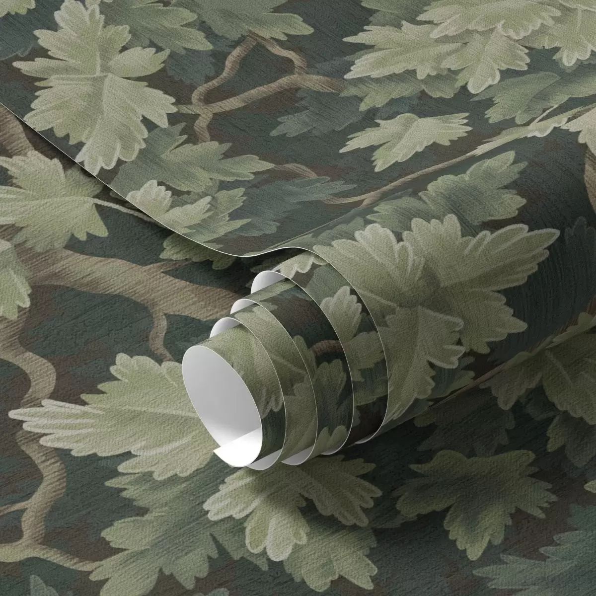 Ταπετσαρία Φύλλα βελανιδιάς σε πράσινο φόντο Nr. a00151