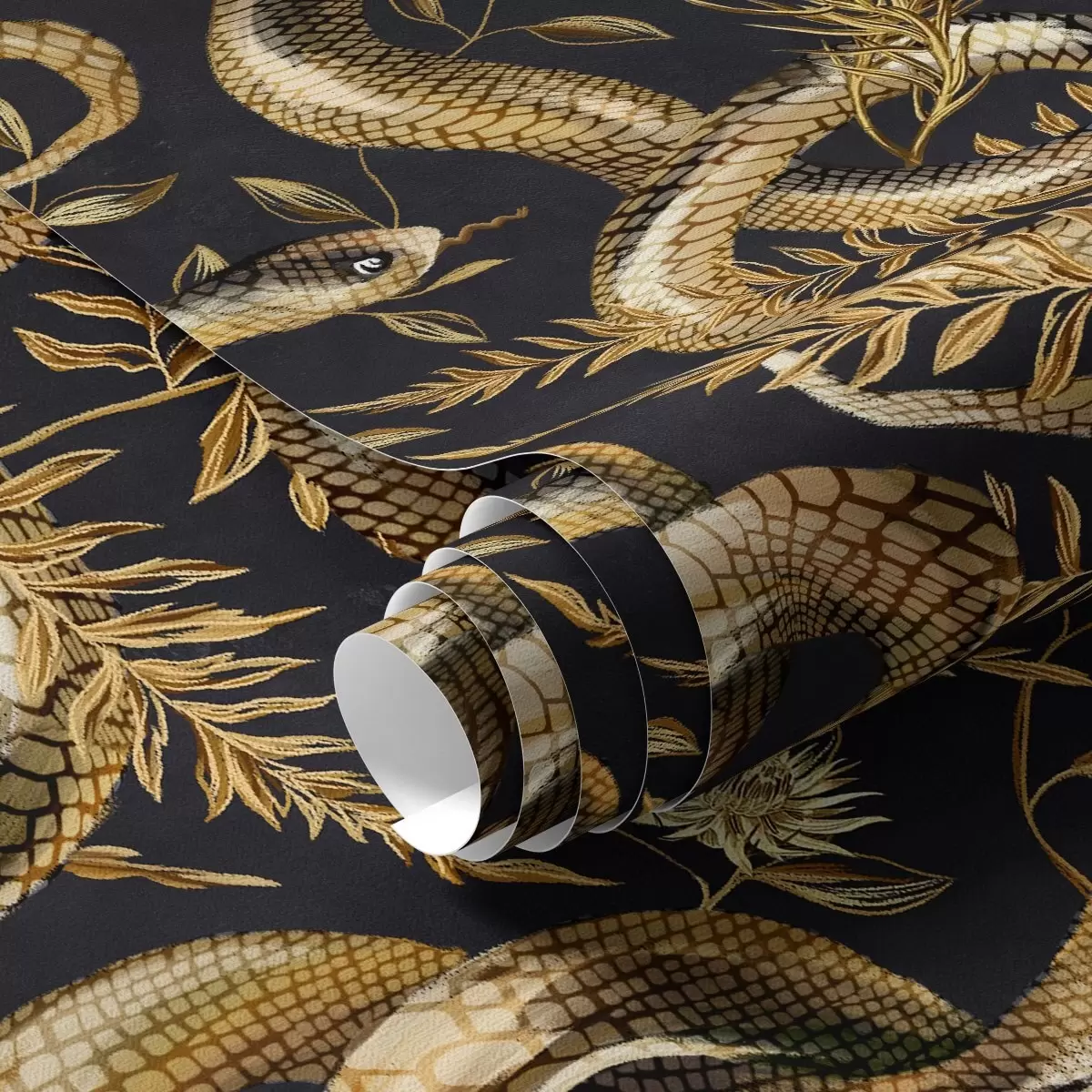 Ταπετσαρία Φίδια και λουλούδια σε σκούρο φόντο Nr. a00158