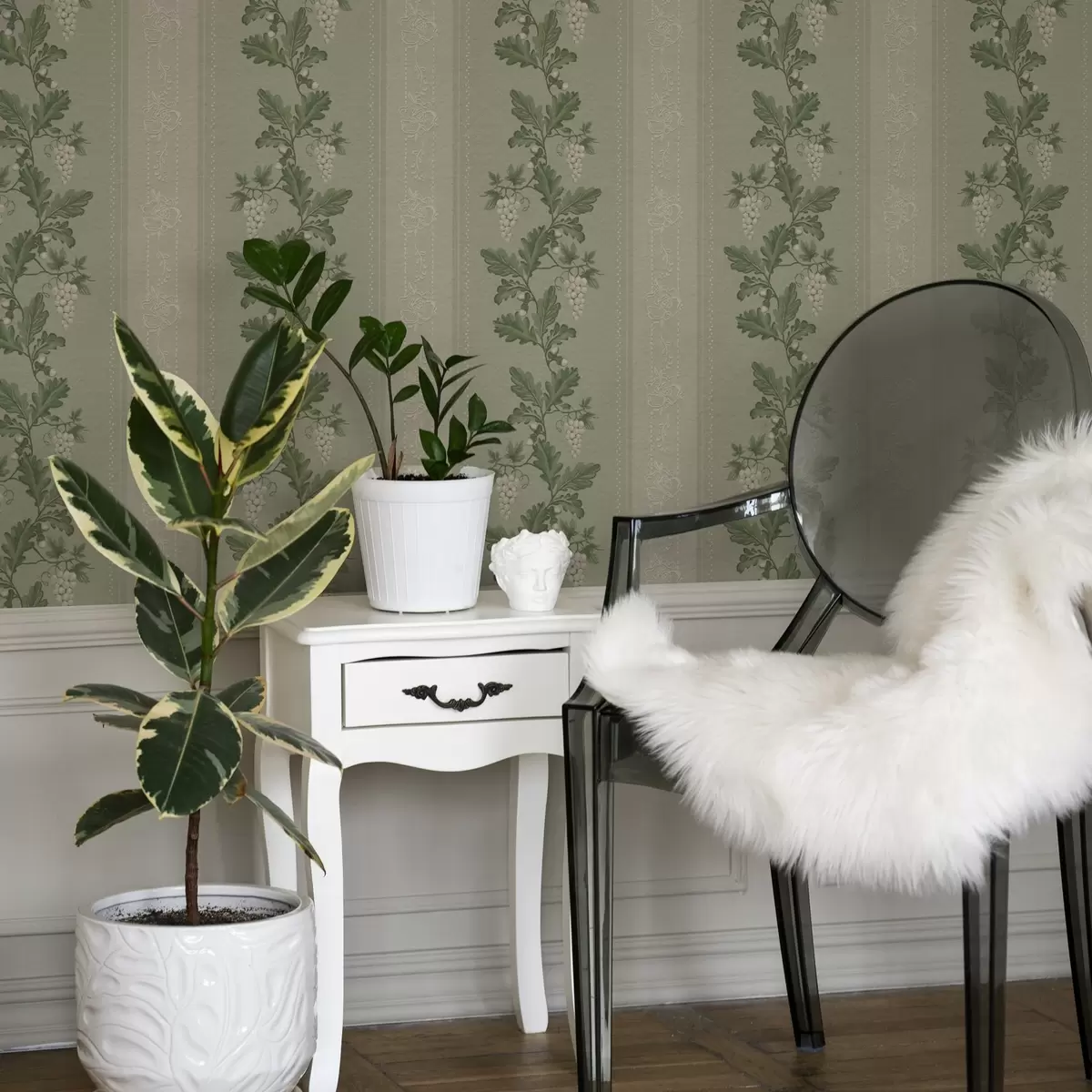 Ταπετσαρία Τσαμπιά σταφυλιών και δαντέλα, πράσινο κλασικό μοτίβο Nr. a00223