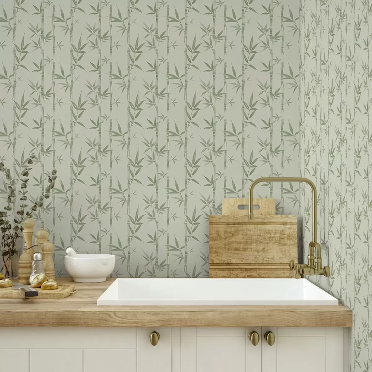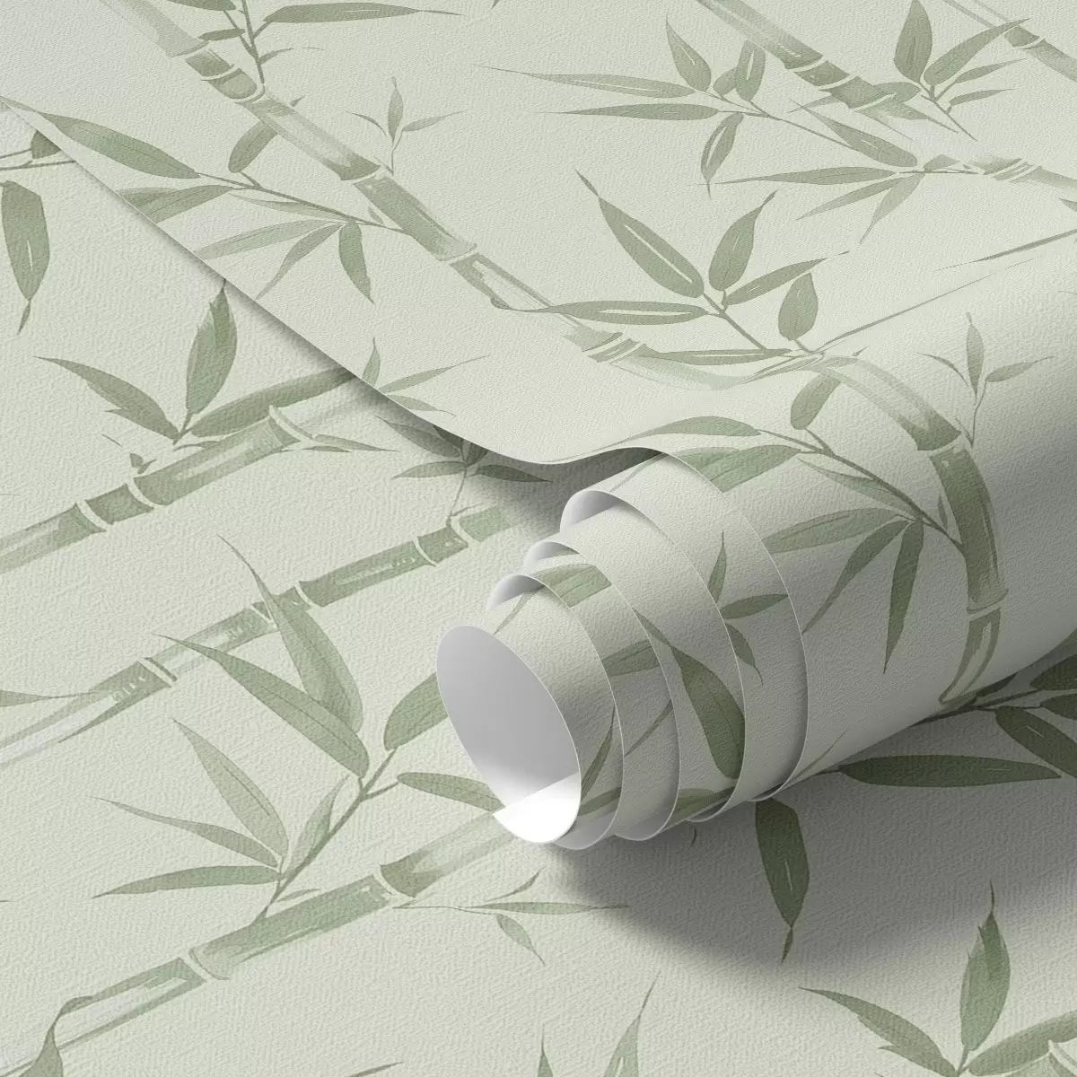 Ταπετσαρία Ανοιχτό πράσινο μπαμπού σε απαλό παστέλ φόντο Nr. a00236v1