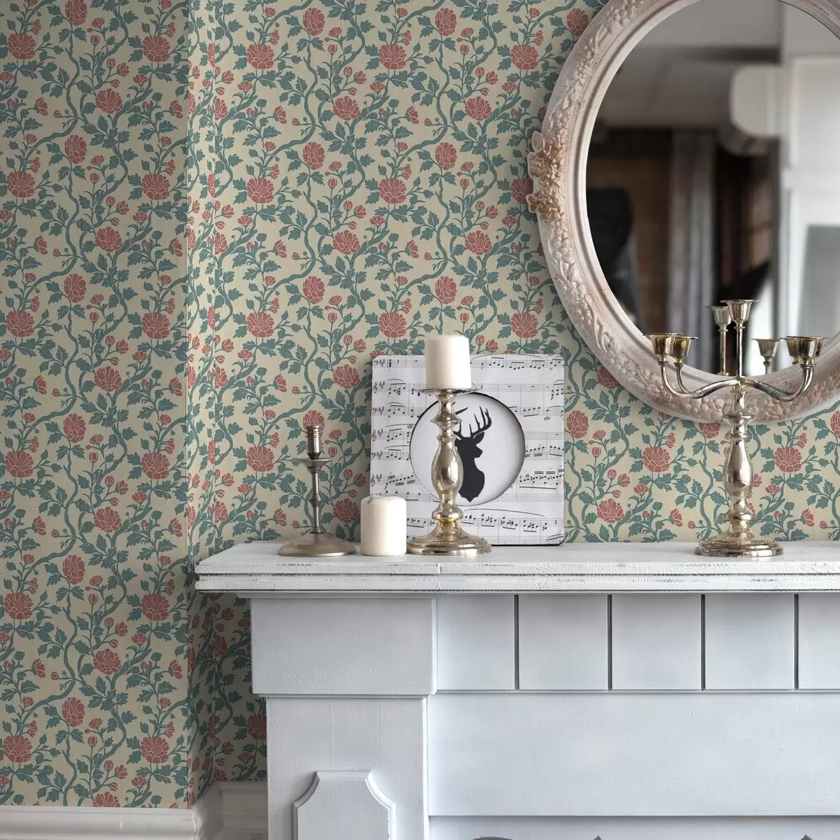 Ταπετσαρία Ρετρό μοτίβο με λουλούδια σε κόκκινο και πράσινο Nr. a00250
