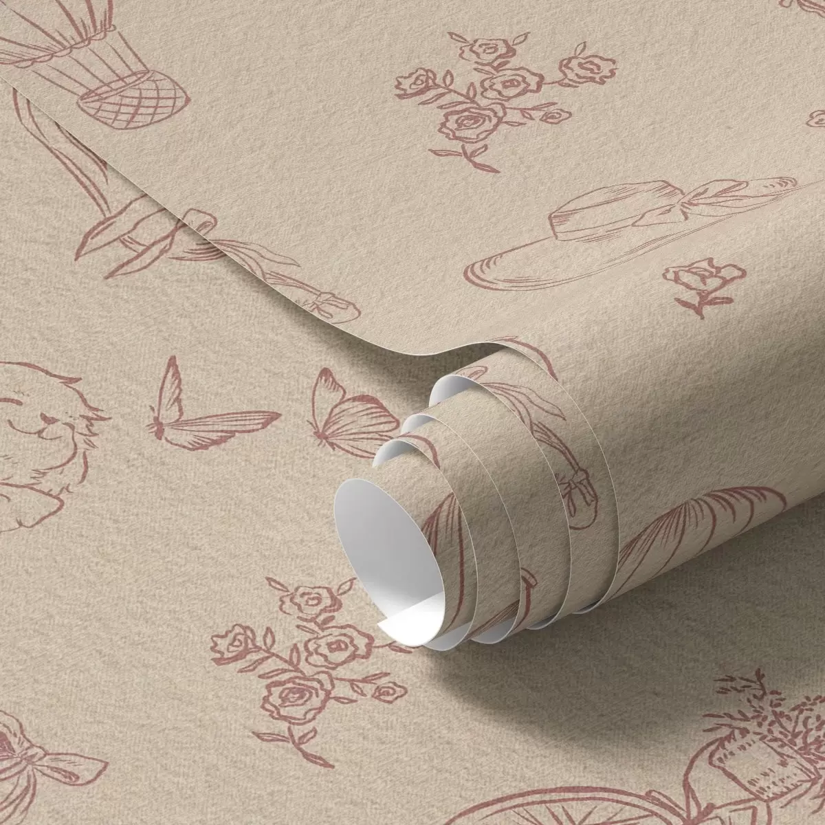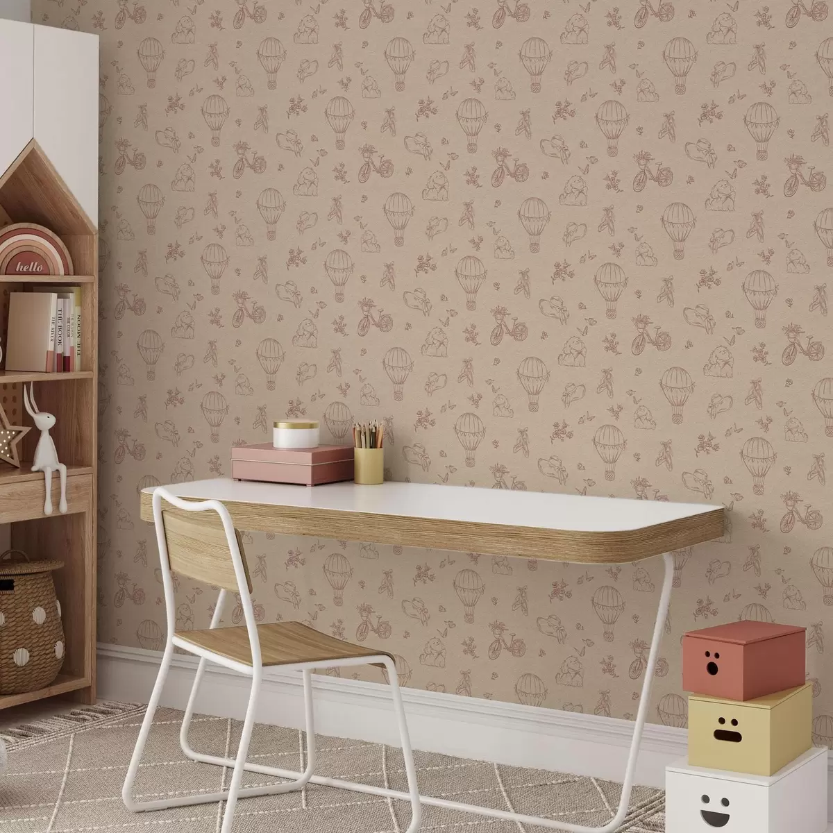 Ταπετσαρία Μωρό ροζ μοτίβο με σκύλο, λουλούδια και αέρα Nr. a00279