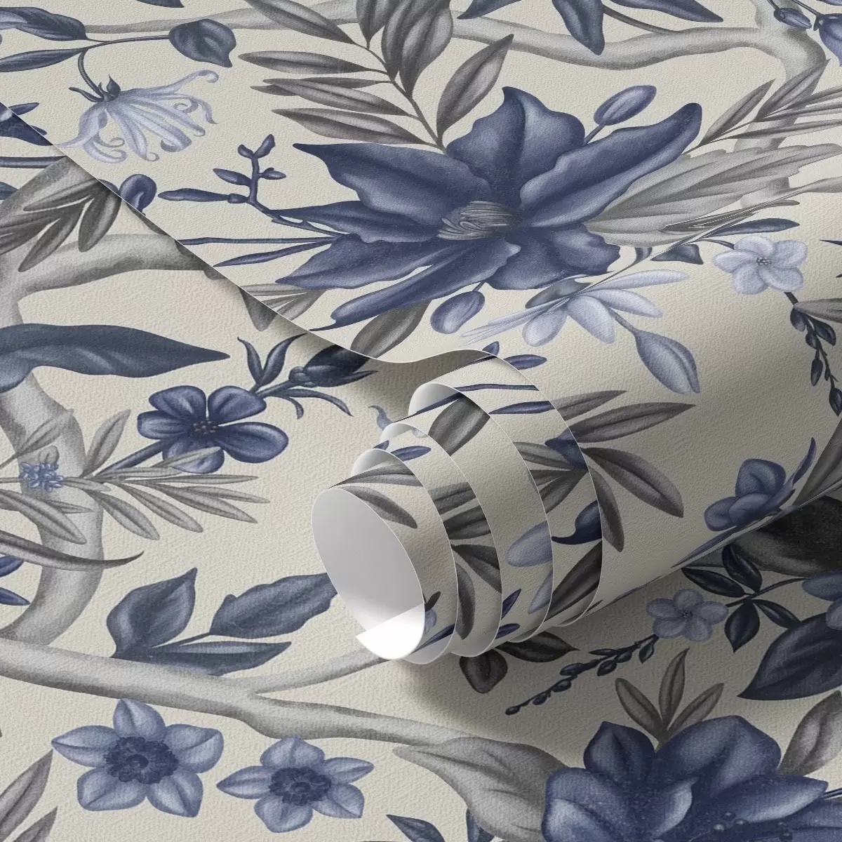 Ταπετσαρία Μπλε και γκρι λουλούδια σε ανοιχτό φόντο Nr. a00304