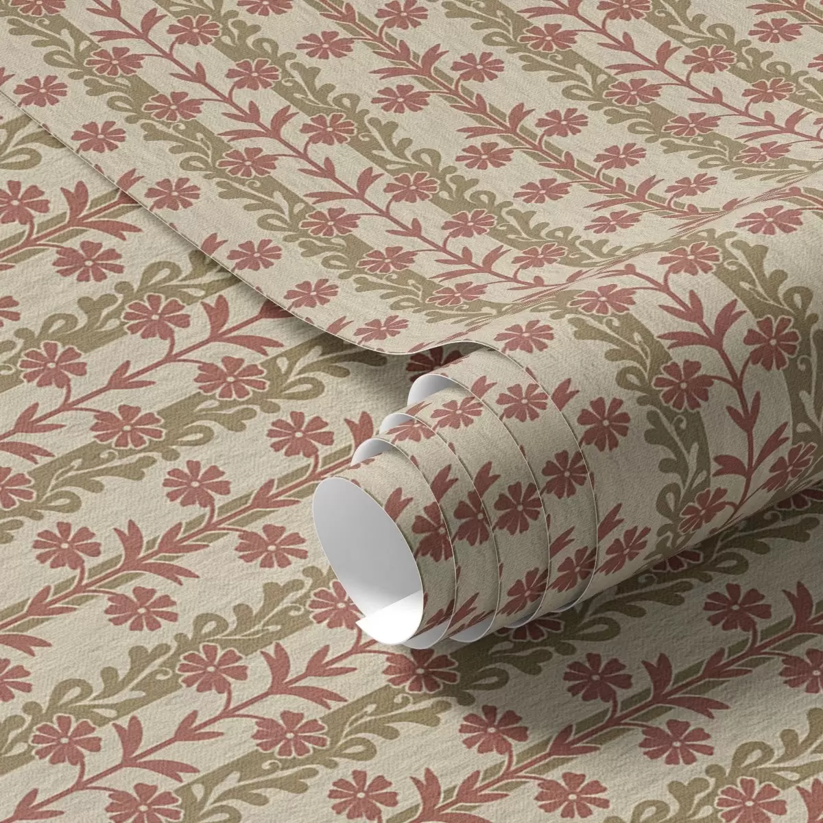 Ταπετσαρία Ριγέ στολίδι με κόκκινα λουλούδια Nr. a00341
