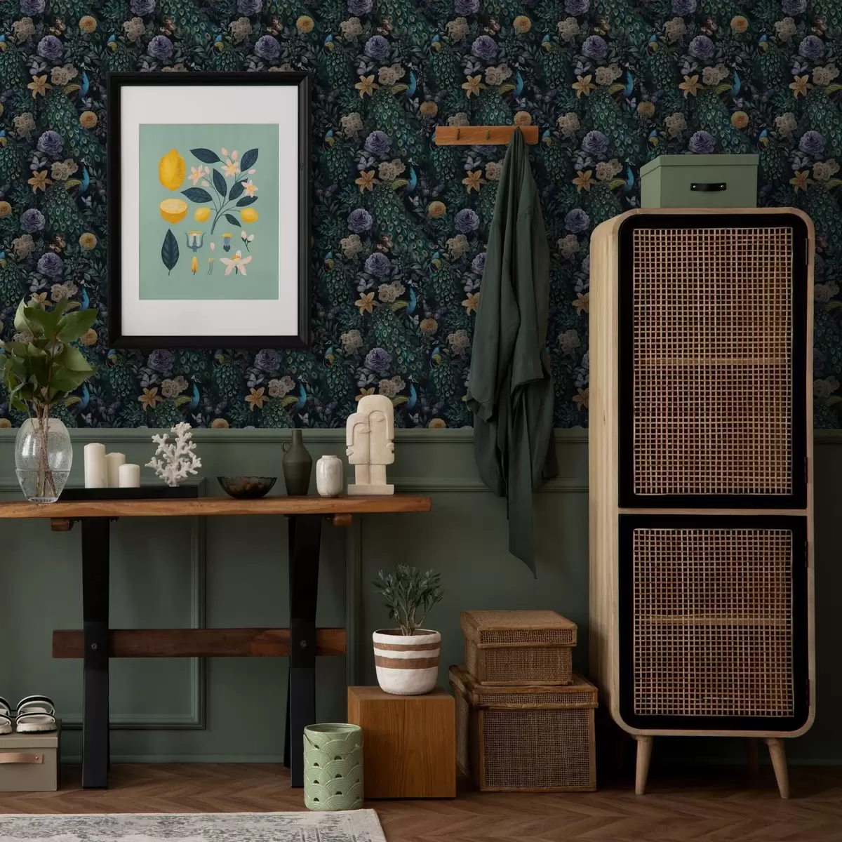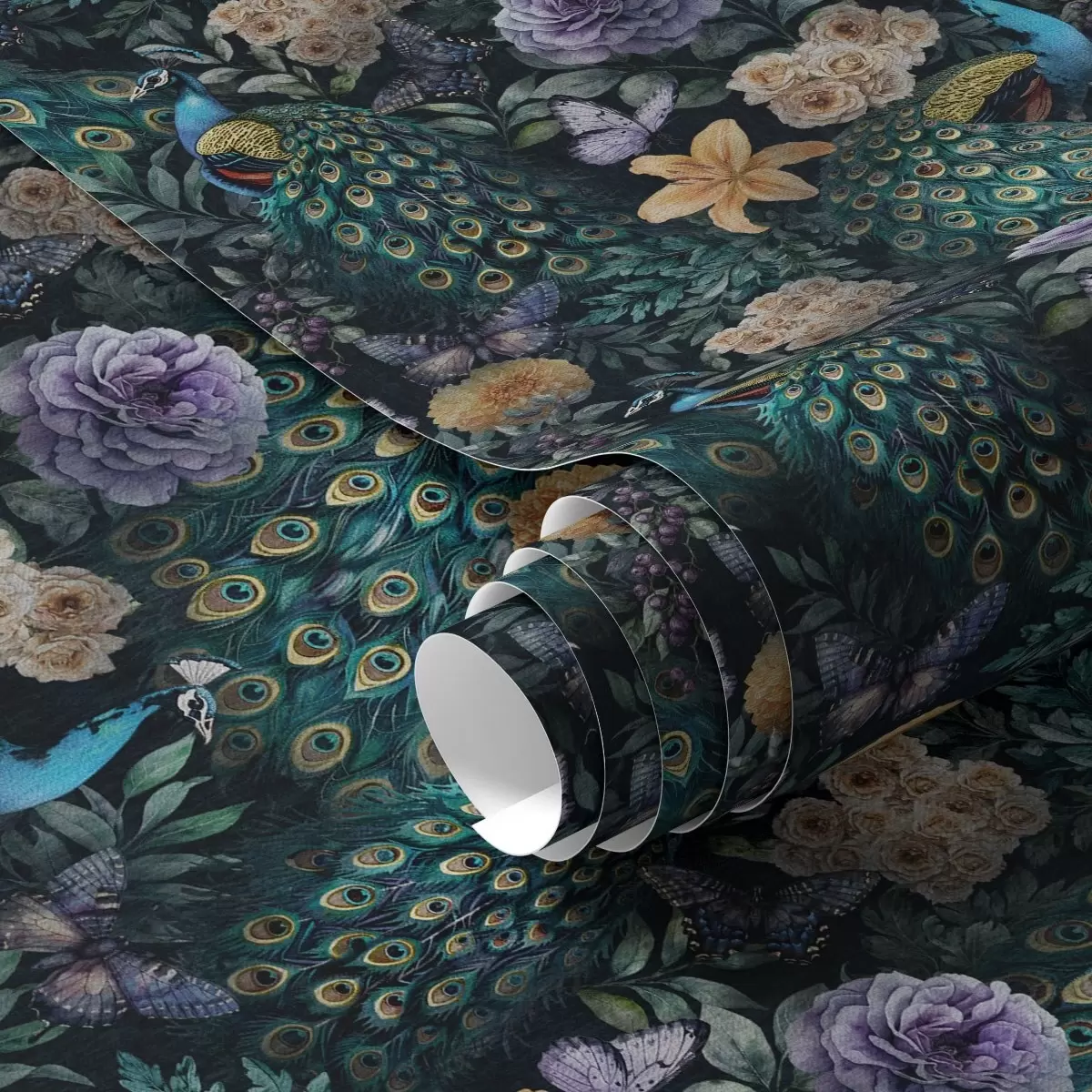 Ταπετσαρία Παγώνια ανάμεσα σε σκούρα λουλούδια και πεταλούδες Nr. a00348