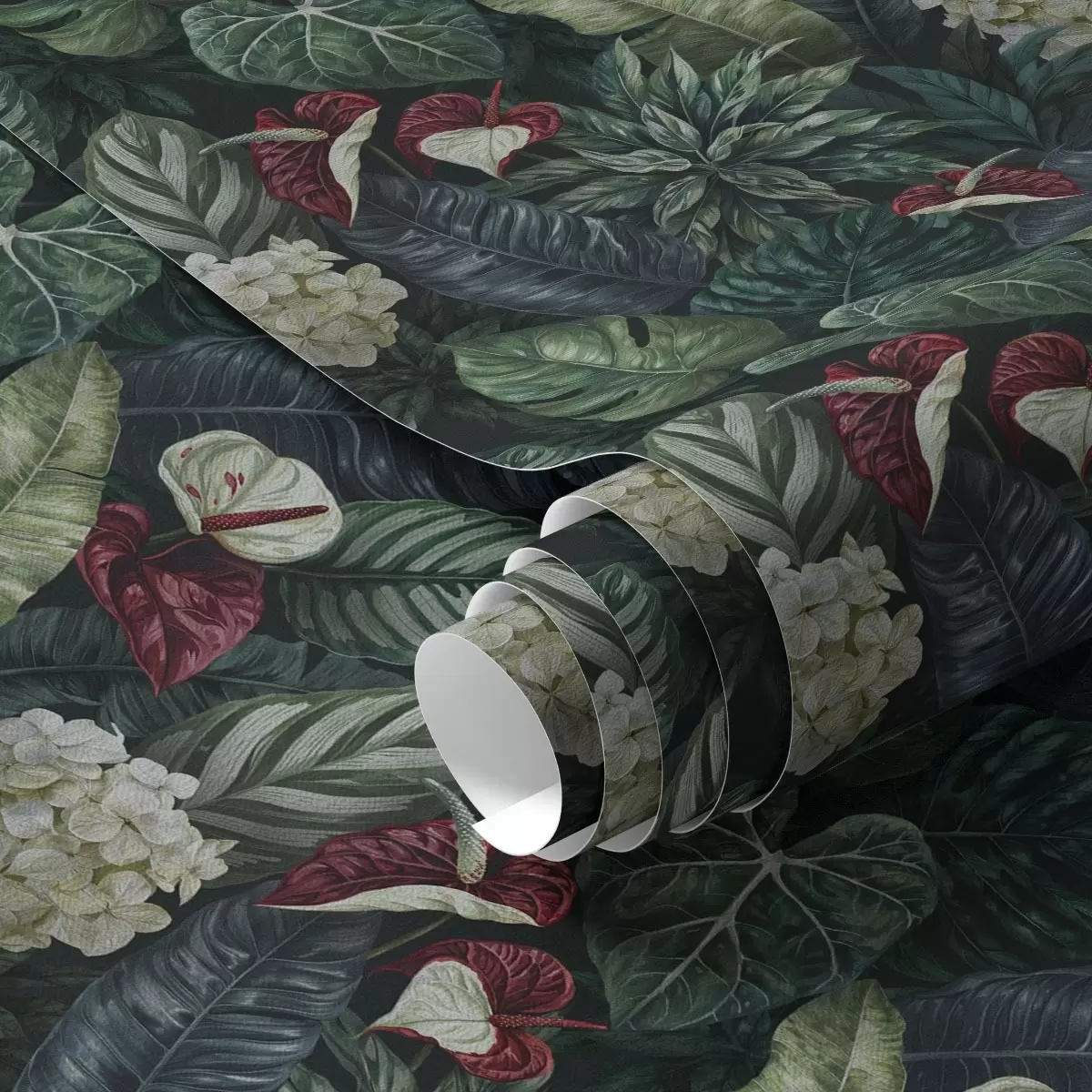 Ταπετσαρία Τροπικά φύλλα με λευκά και κόκκινα λουλούδια Nr. a00361