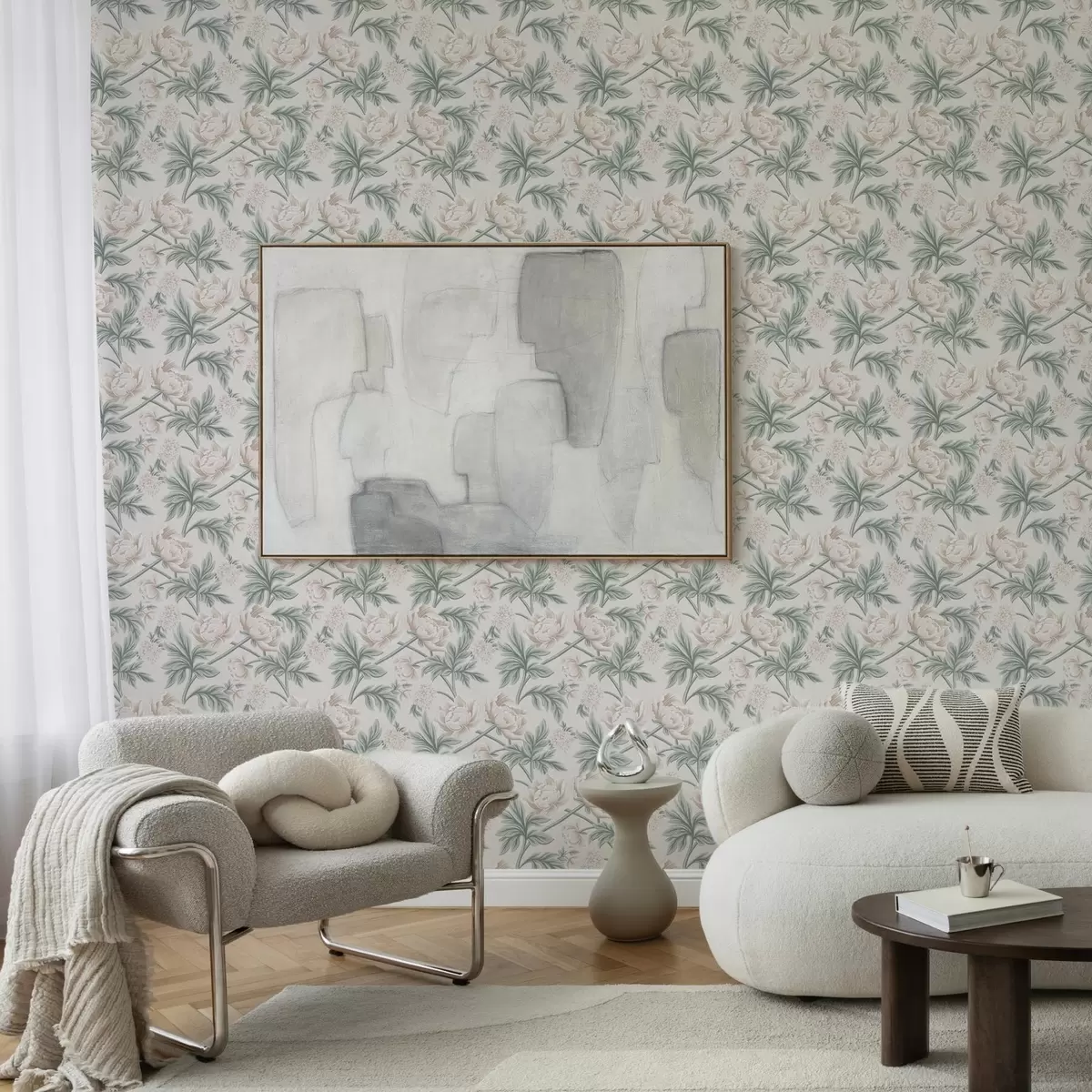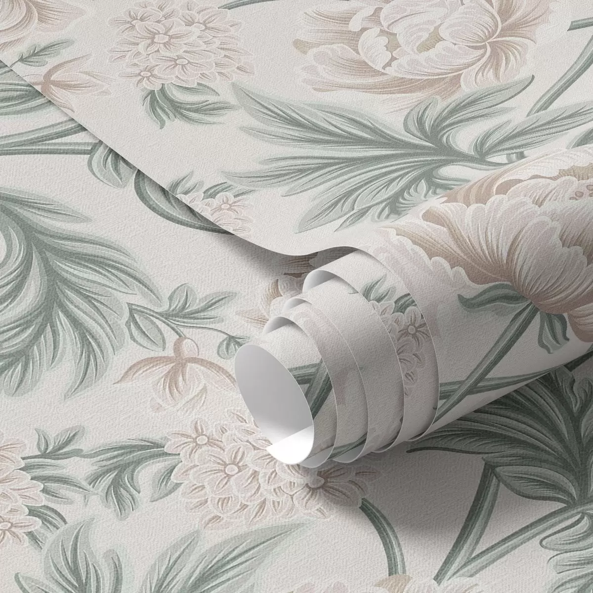 Ταπετσαρία Πλούσιες παιώνιες σε ανοιχτό μπεζ και πράσινο μπεζ και πράσινο Nr. a00445