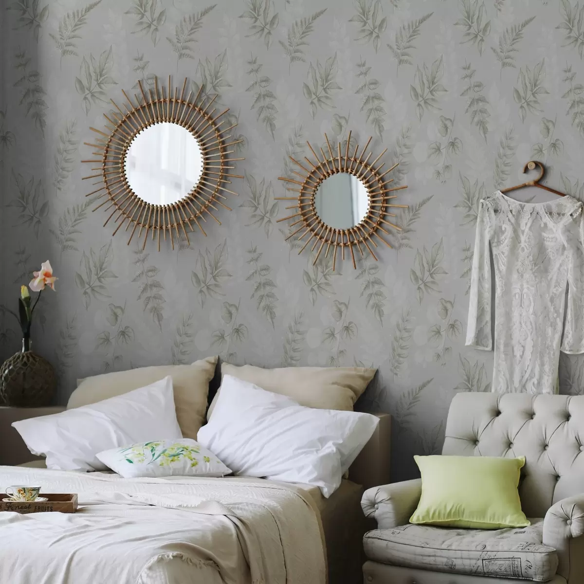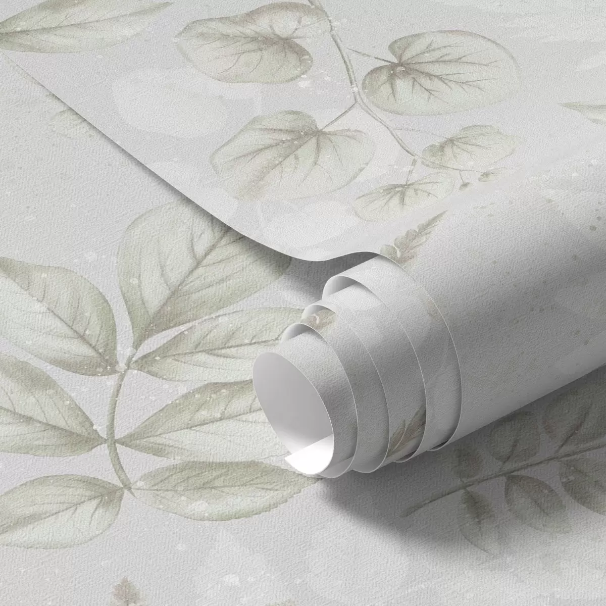 Ταπετσαρία Ανοιχτόχρωμα φύλλα ακουαρέλας με εφέ πιτσιλίσματος σε γκρι φόντο Nr. a00446