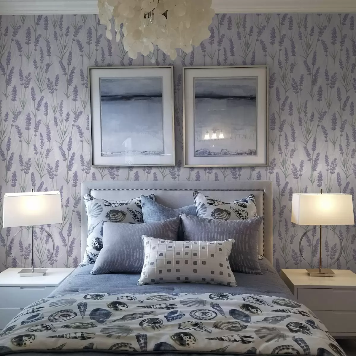 Ταπετσαρία Κλαδάκια λεβάντας σε παλέτα ακουαρέλας σε απαλό μωβ χρώμα Nr. a00447