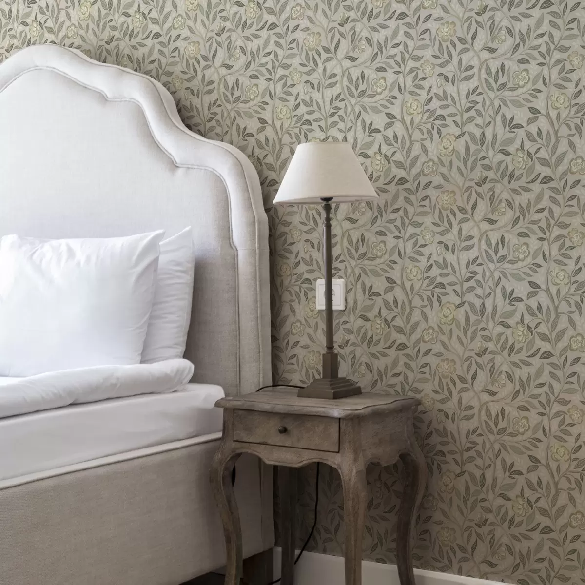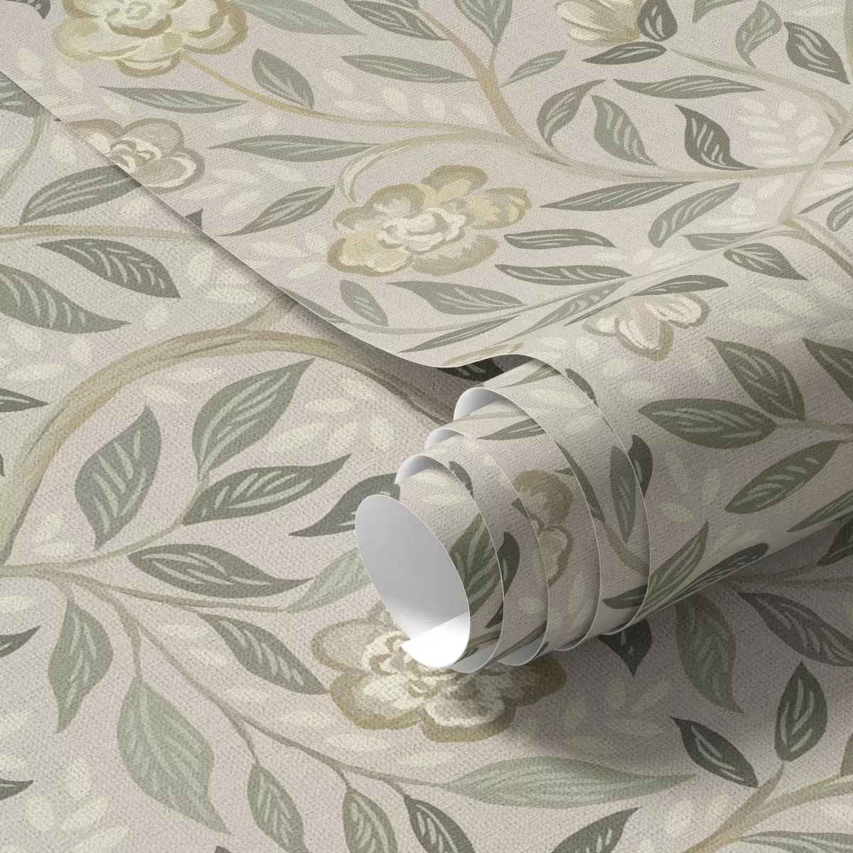 Ταπετσαρία Κρεμώδη τριαντάφυλλα και φύλλα ελιάς σε ροζ σκονισμένο φόντο Nr. a00455