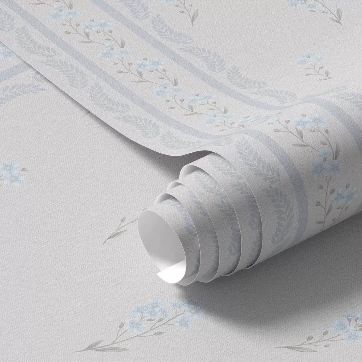Ταπετσαρία Λευκό φόντο με μπλε λουλούδια και διακοσμητική λωρίδα Nr. a00484v1