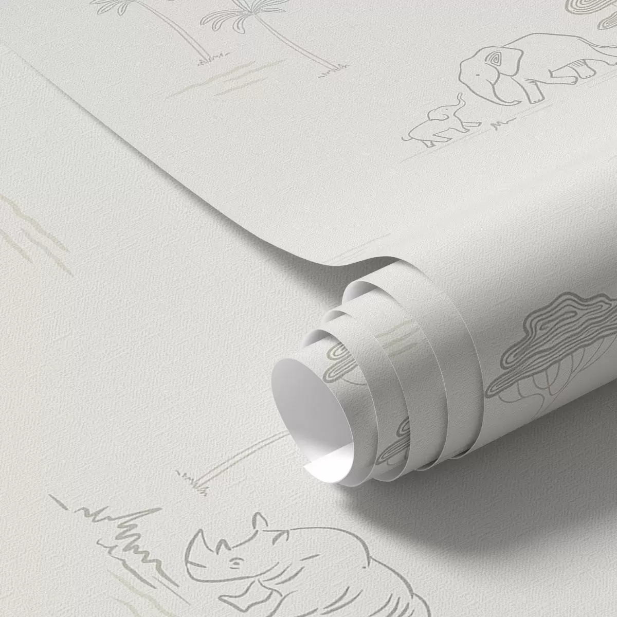 Ταπετσαρία Μινιμαλιστικό σαφάρι: ελέφαντες, ρινόκεροι, λεοπαρδάλεις και φοίνικες Nr. a00492