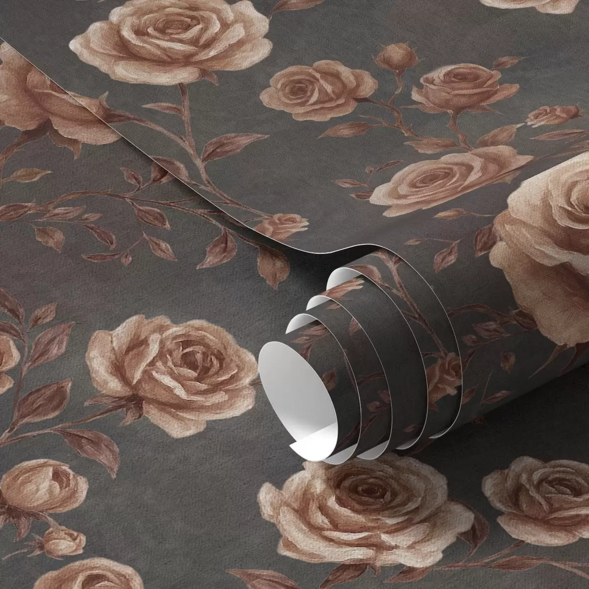 Ταπετσαρία Vintage τριαντάφυλλα σε φόντο γραφίτη, παλέτα τερακότας Nr. a00497v1