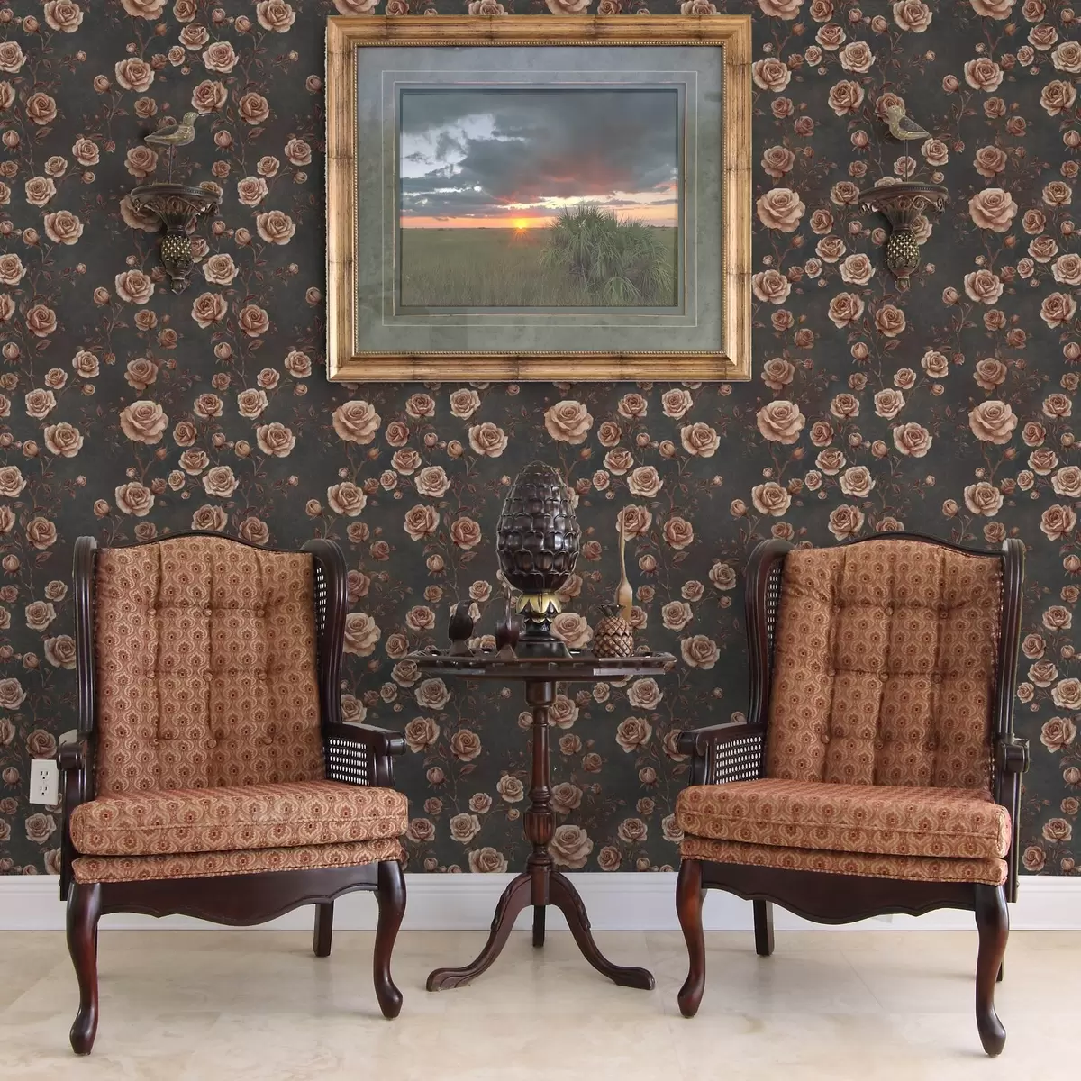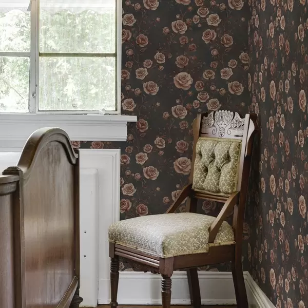 Ταπετσαρία Vintage τριαντάφυλλα σε φόντο γραφίτη, παλέτα τερακότας Nr. a00497v1