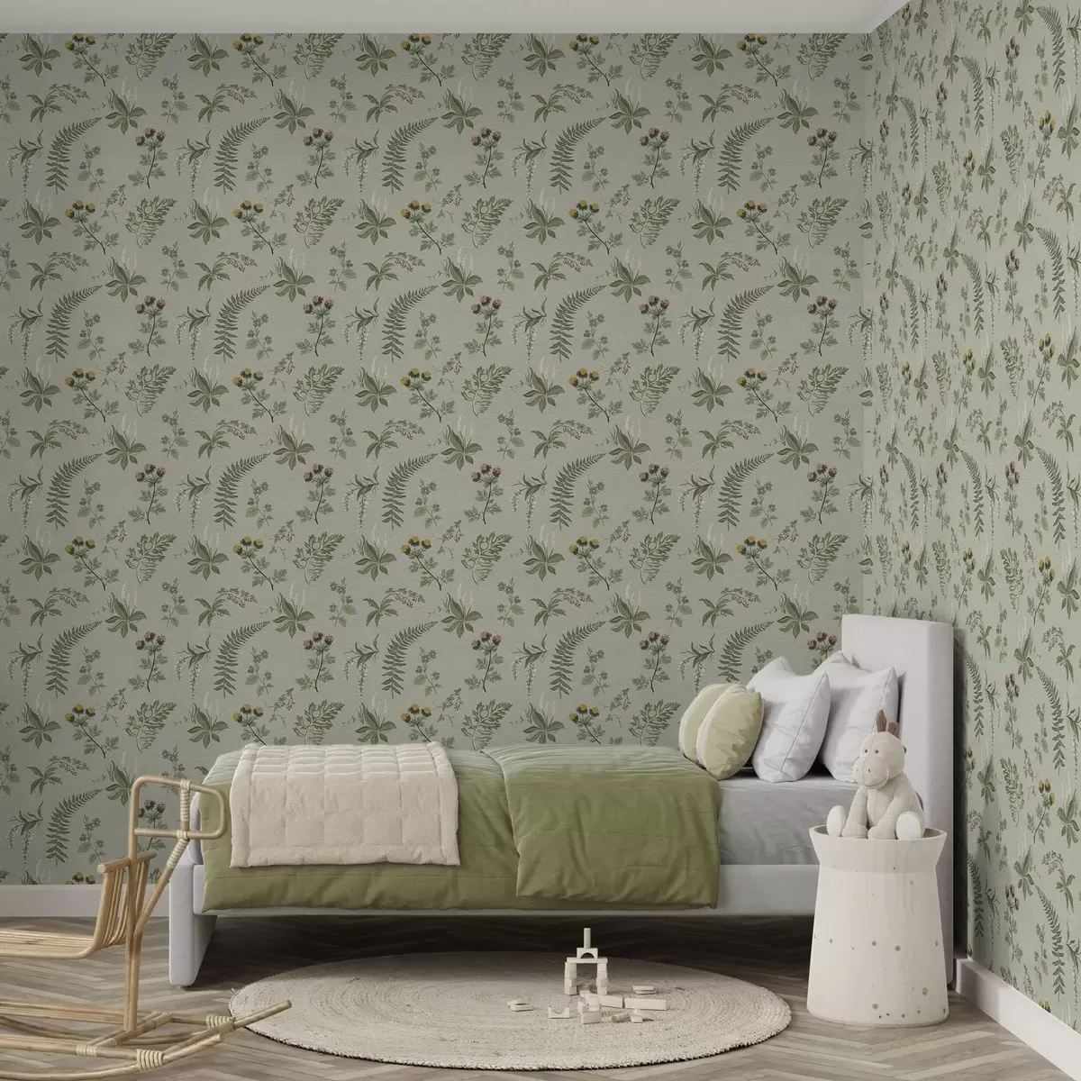 Ταπετσαρία Βοτανικά χόρτα και φτέρες σε απαλό γκρι-πράσινο χρώμα Nr. a00498