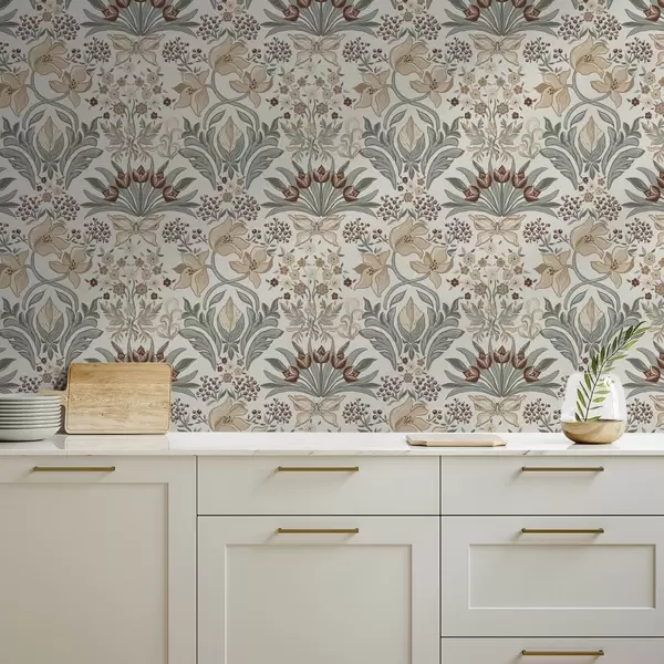 Ταπετσαρία Διακοσμητικά κρίνα και μια πεταλούδα σε κρεμ φόντο Nr. a00500