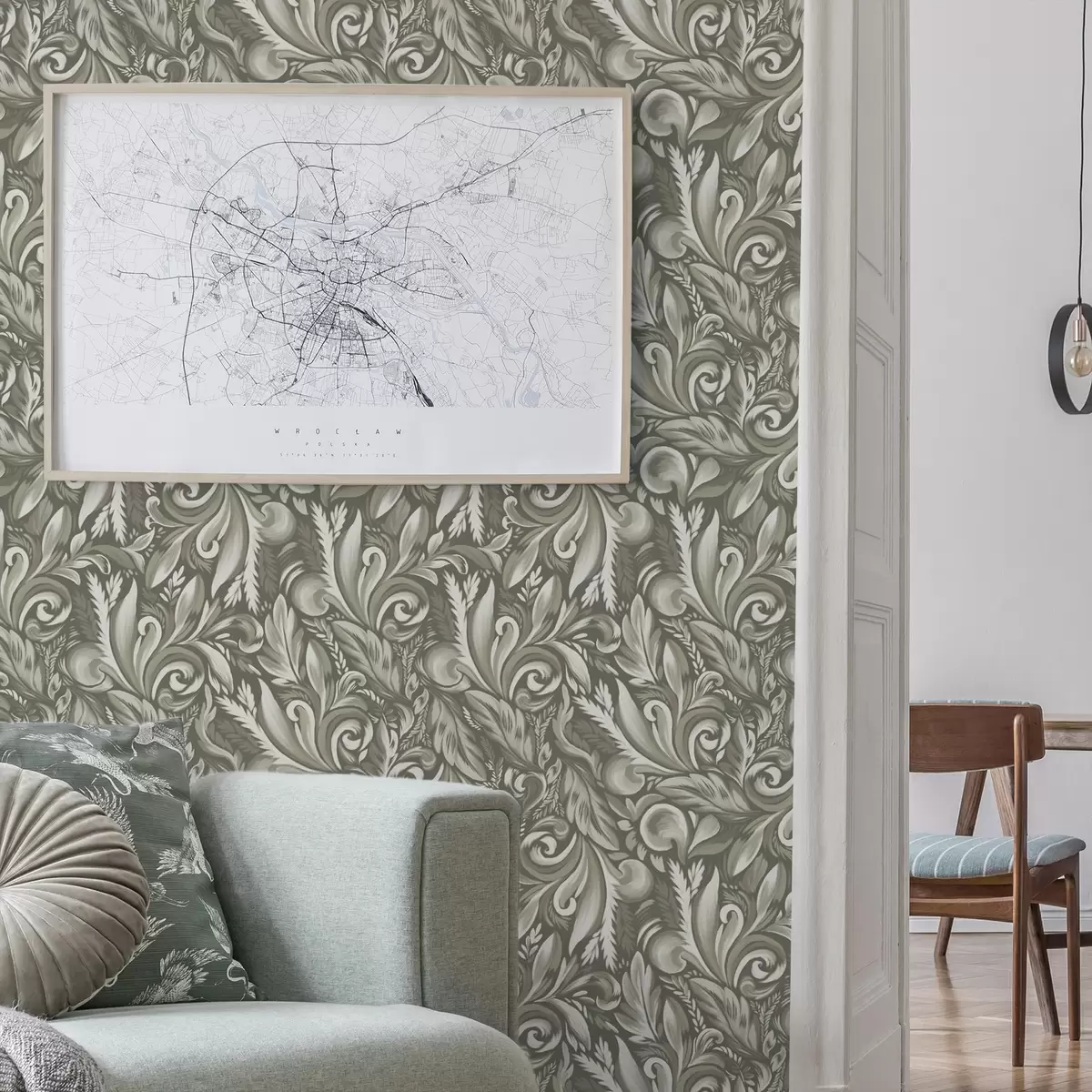 Ταπετσαρία Ακάνθοι σε παλέτα χρωμάτων ελιάς-μπεζ Nr. a00501