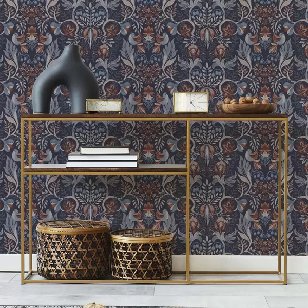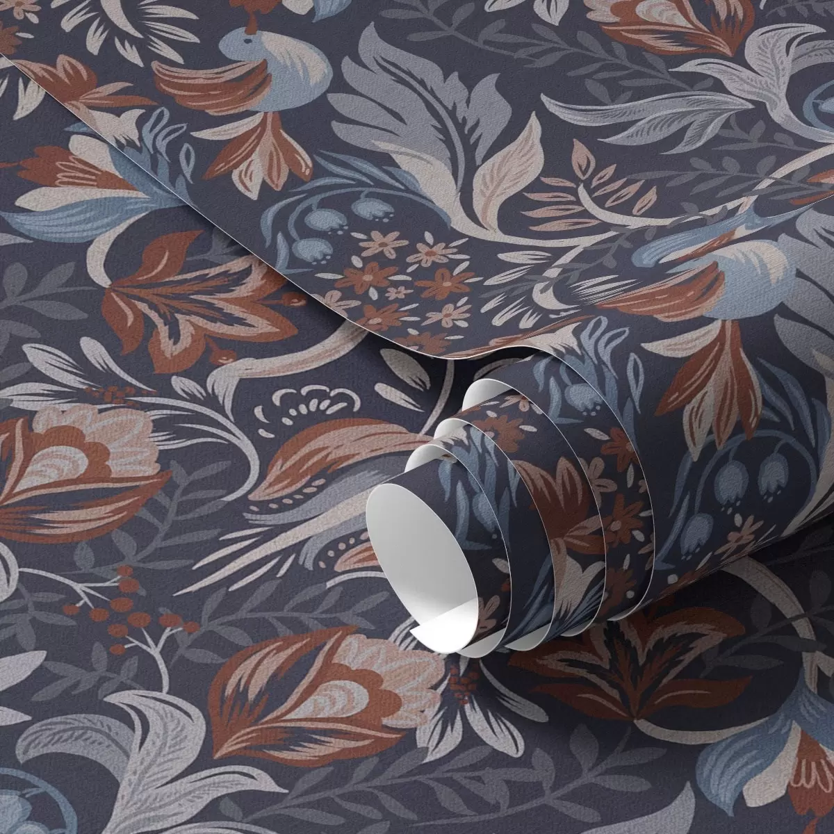 Ταπετσαρία Λουλούδια και πουλιά σε σκούρο μπλε φόντο Nr. a00502