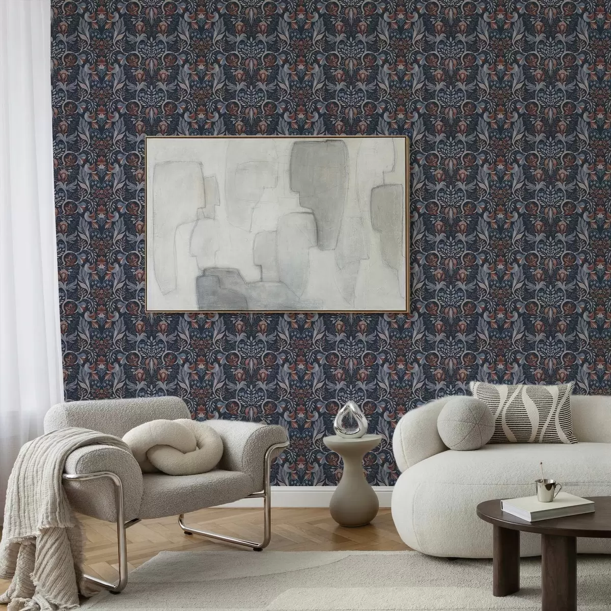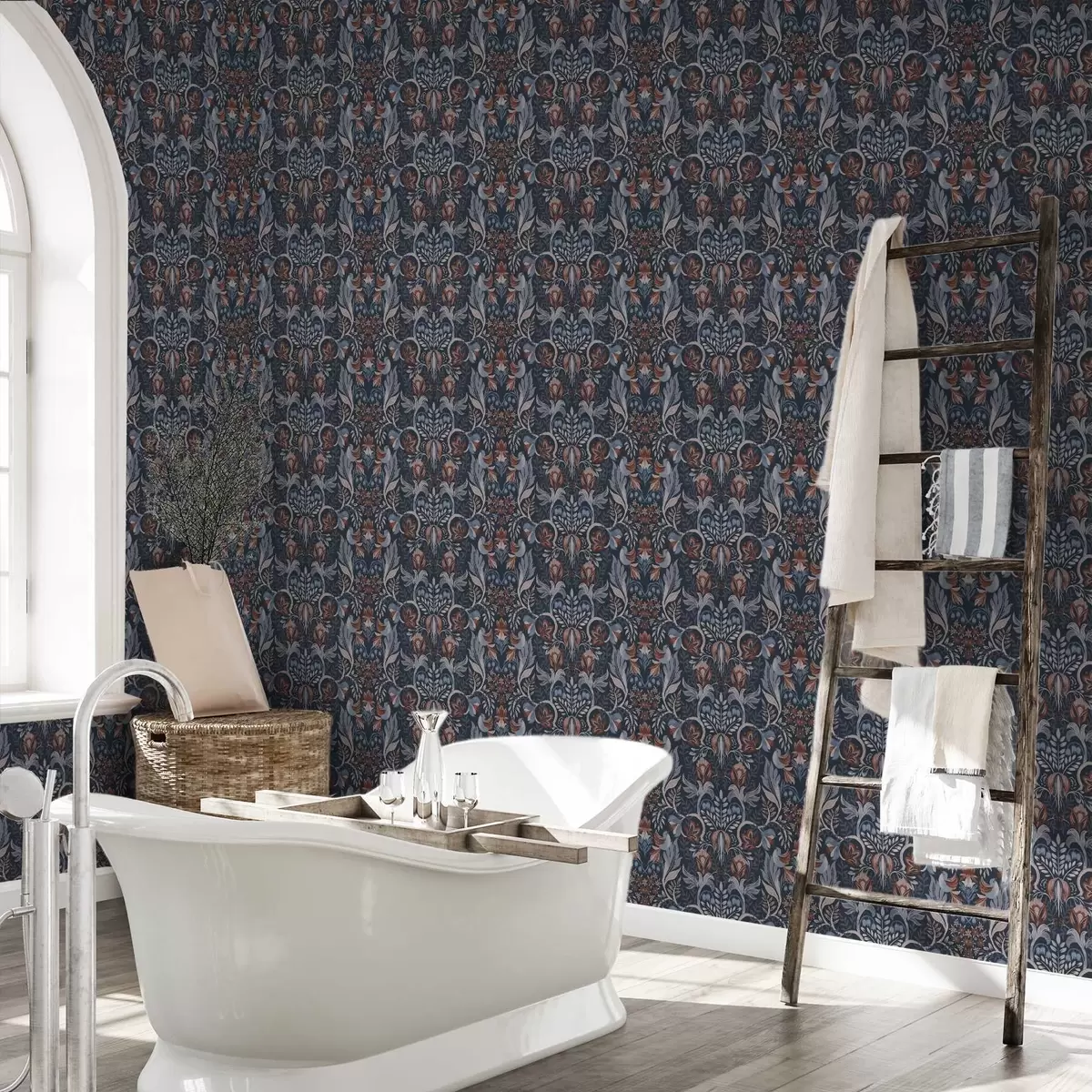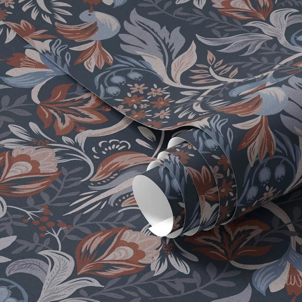 Ταπετσαρία Λαϊκός διακοσμητικός στοιχείο με πουλιά, βαθύ ινδigo Nr. a00502v1