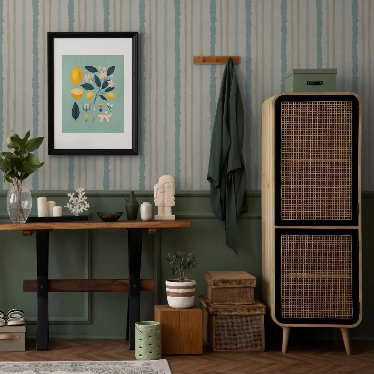 Ταπετσαρία Τυρκουάζ-μπεζ ρίγες με χειροποίητο εφέ Nr. a00510v1