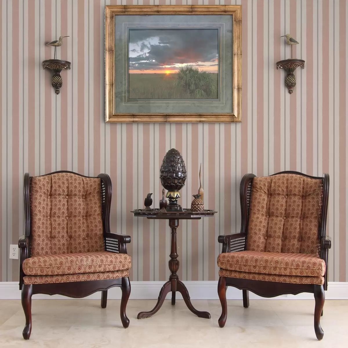 Ταπετσαρία Τερρακότα-μπεζ φαρδιές ρίγες με γκριζωπή προφορά Nr. a00513