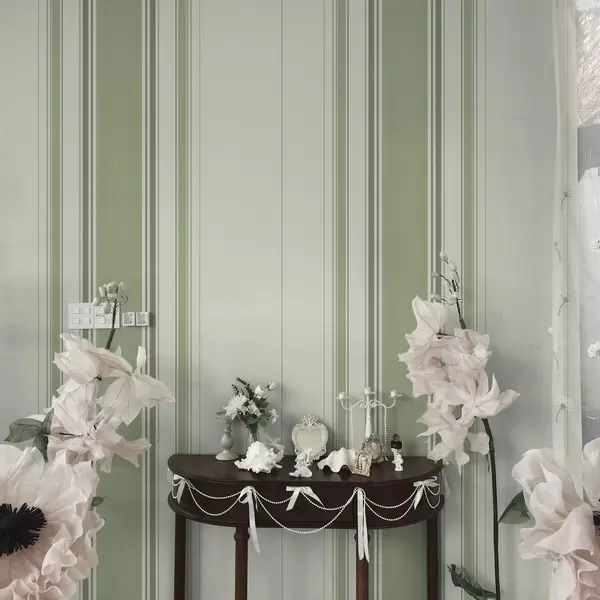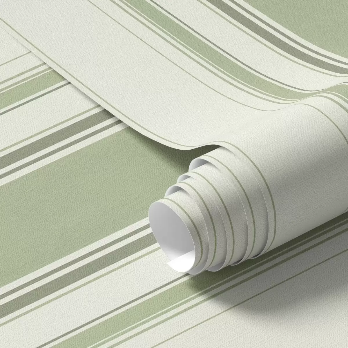 Ταπετσαρία Κρεμώδες φόντο με φαρδιά πράσινη κεντρική λωρίδα Nr. a00519