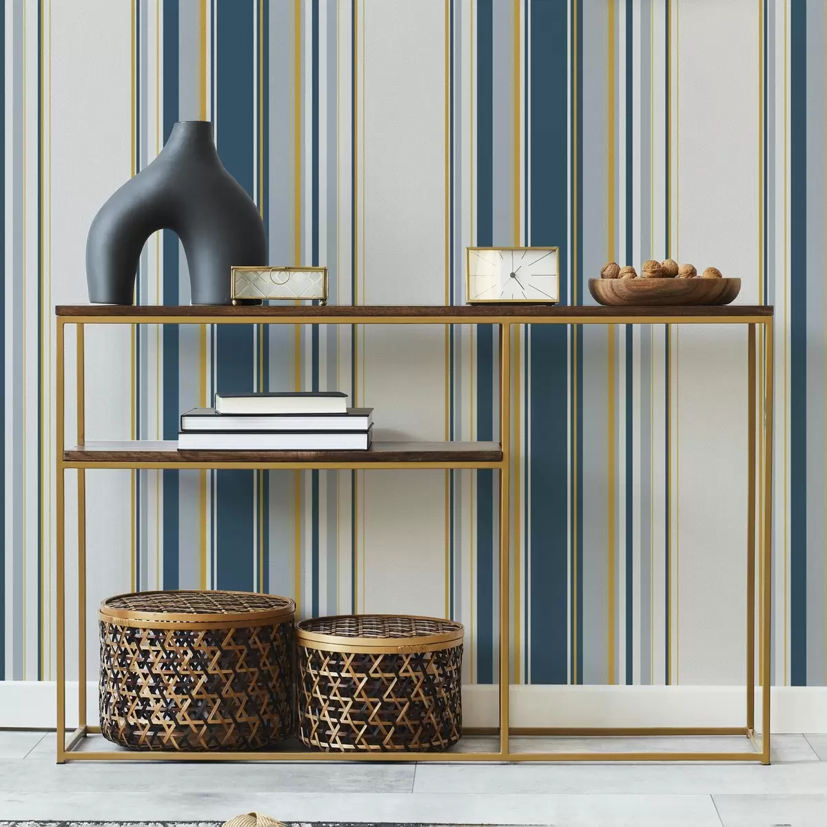 Ταπετσαρία Πυκνό μοτίβο από μπλε και κίτρινες κάθετες ρίγες Nr. a00524