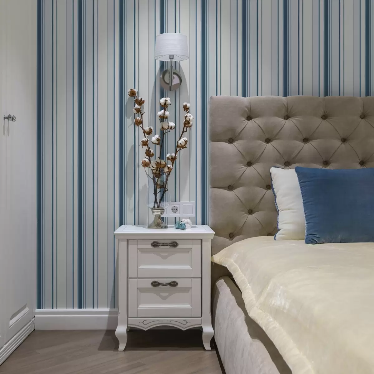 Ταπετσαρία Τυρκουάζ και μπλε ρίγες διαφορετικού πλάτους σε ανοιχτό φόντο Nr. a00530
