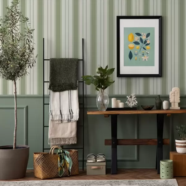 Ταπετσαρία Κρεμώδες φόντο με ομοιόμορφες πράσινες κάθετες ρίγες Nr. a00560