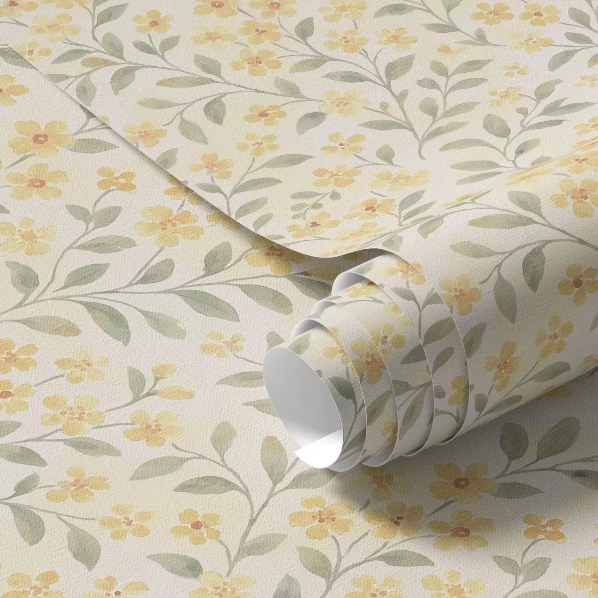 Ταπετσαρία Ακουαρέλα με κίτρινα λουλούδια σε ανοιχτόχρωμο φόντο Nr. a00570