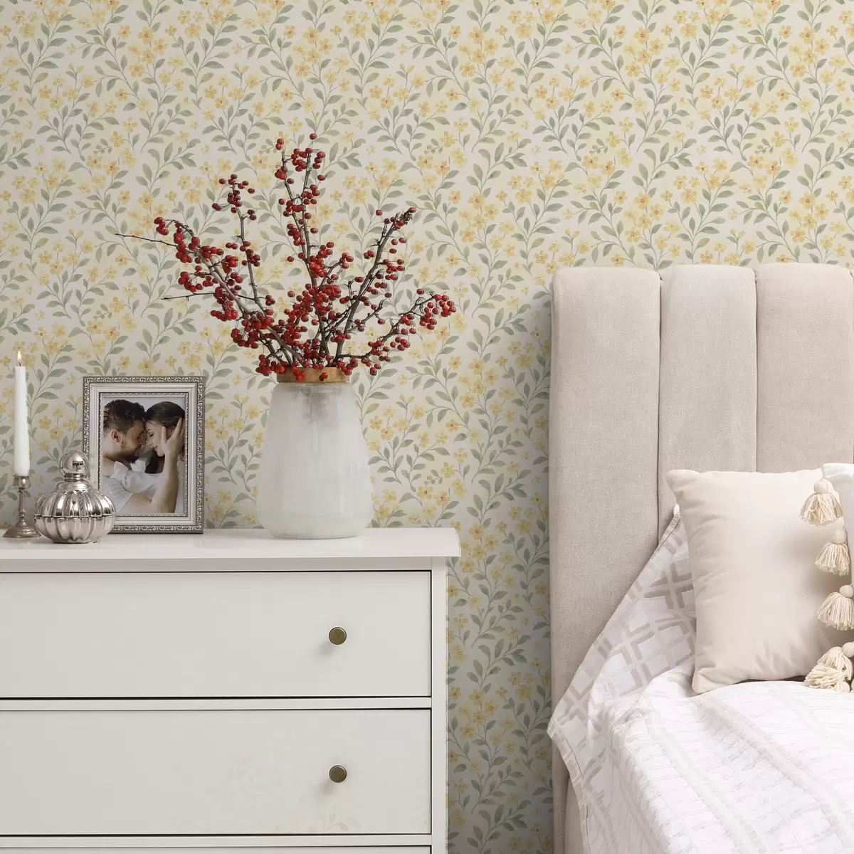 Ταπετσαρία Ακουαρέλα με κίτρινα λουλούδια σε ανοιχτόχρωμο φόντο Nr. a00570