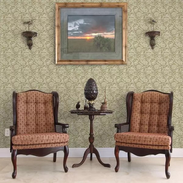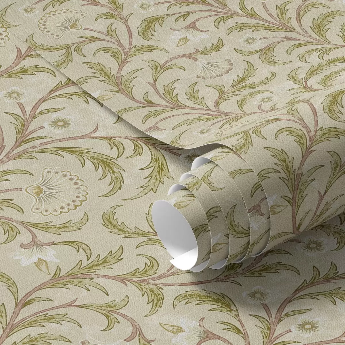 Ταπετσαρία Vintage διακοσμητικό με σπείρες και λουλούδια, μπεζ και λαδί Nr. a00574