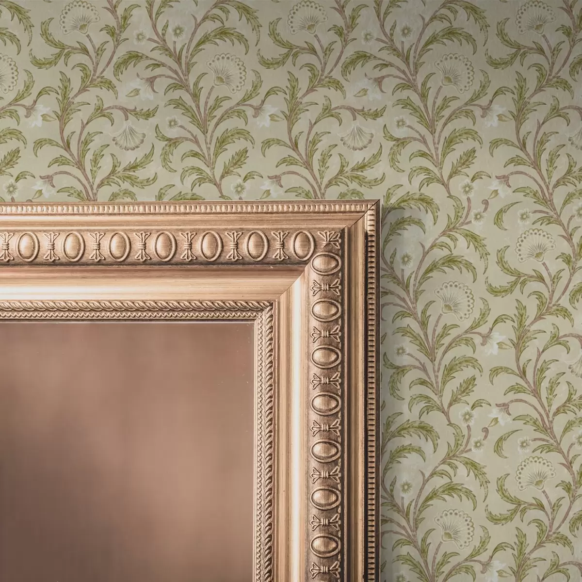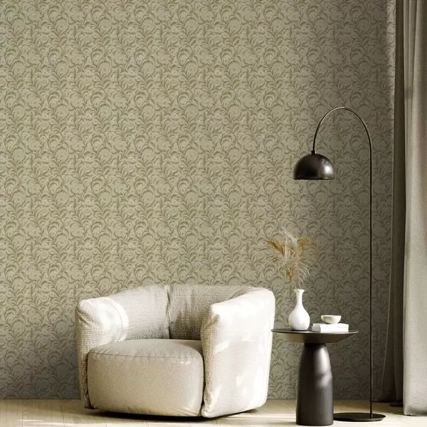 Ταπετσαρία Vintage διακοσμητικό με σπείρες και λουλούδια, μπεζ και λαδί Nr. a00574