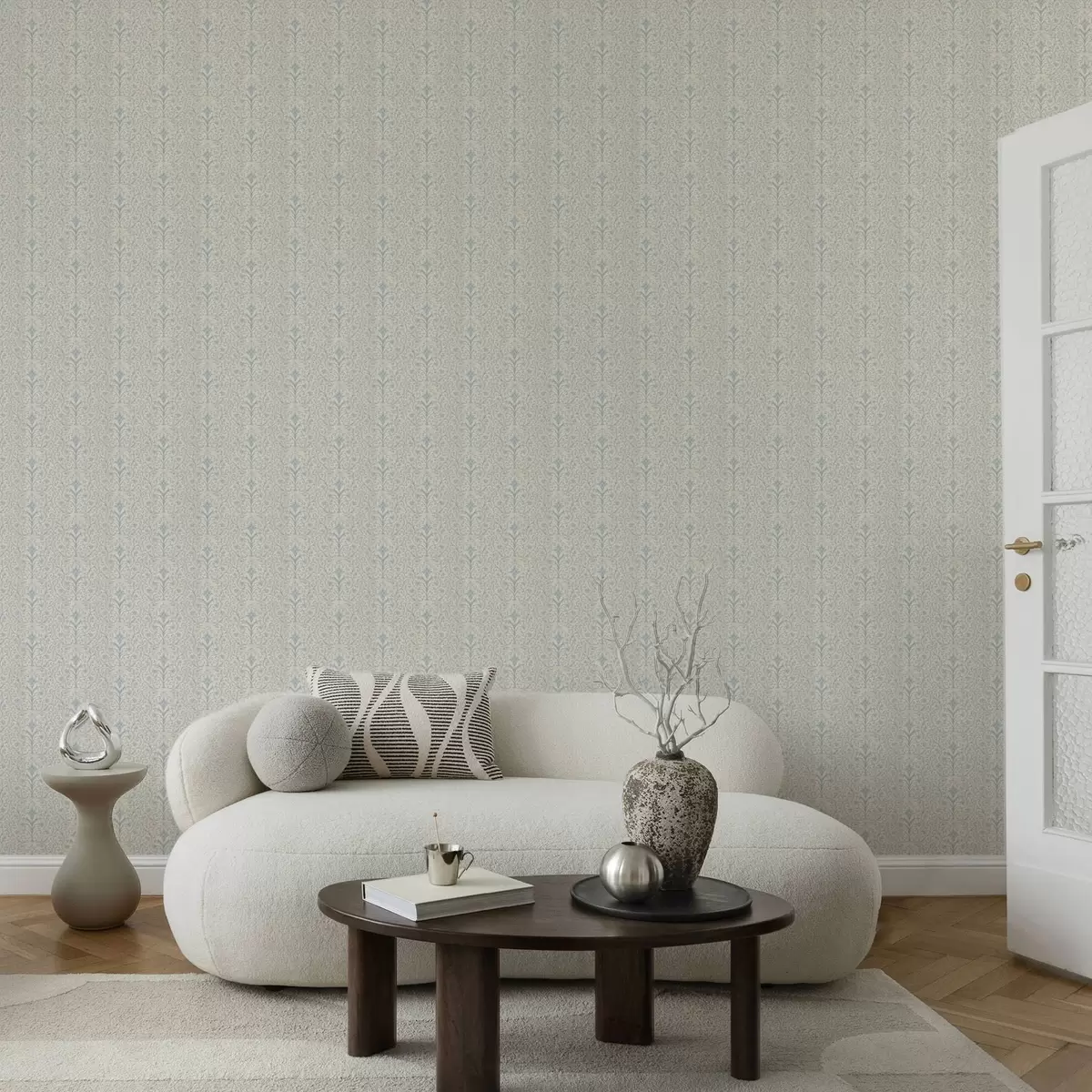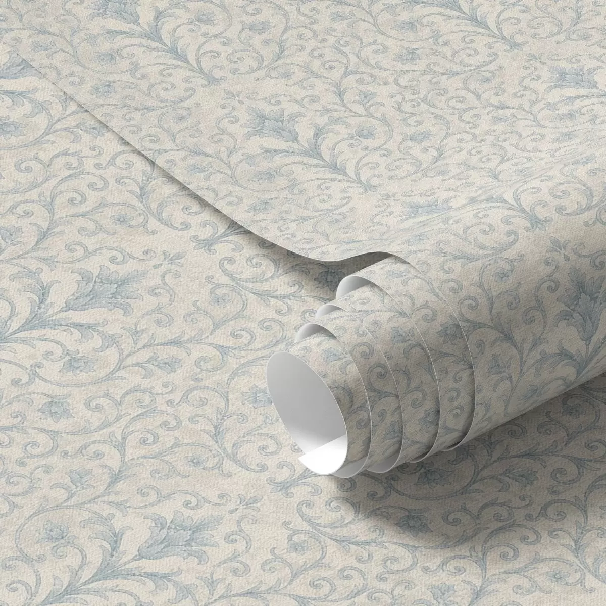 Ταπετσαρία Μπλε δαμασκηνό με σπειροειδή σχέδια σε κρεμ φόντο Nr. a00578