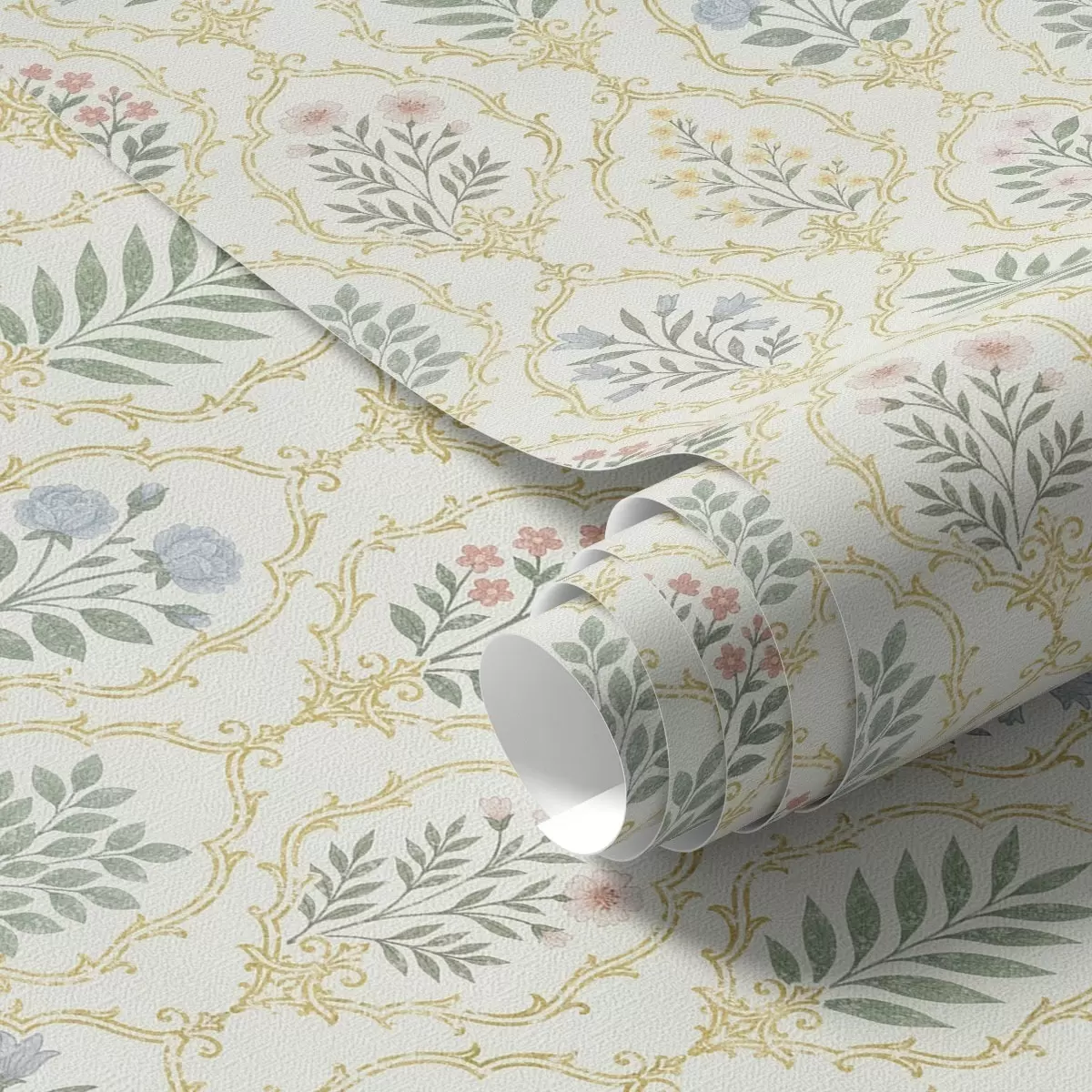 Ταπετσαρία Βοτανικά μενταγιόν σε πλέγμα, παστέλ αποχρώσεις Nr. a00579