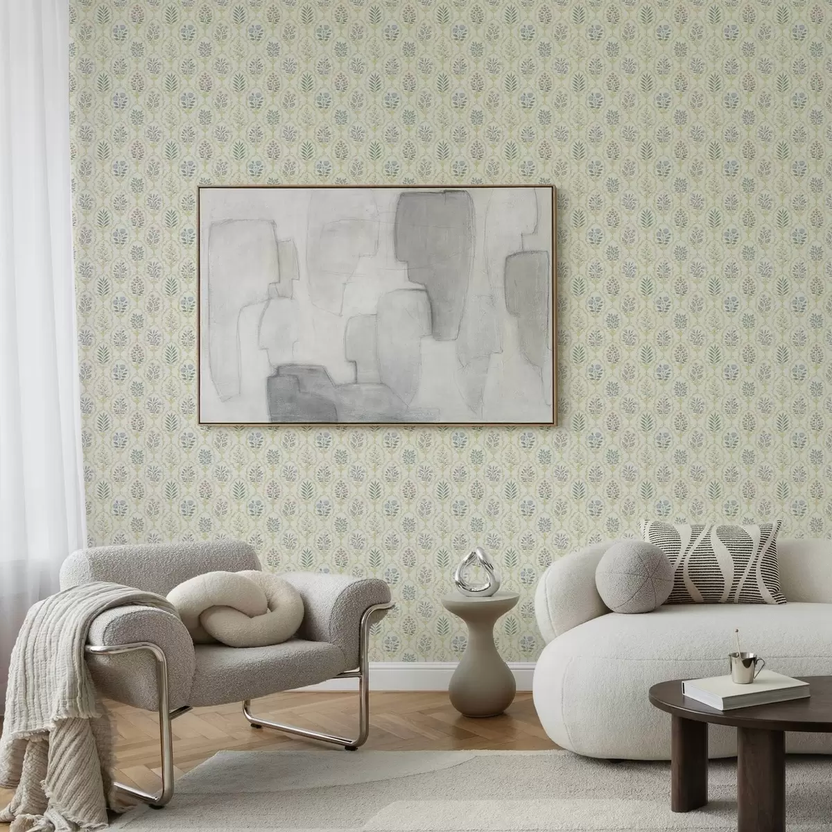 Ταπετσαρία Βοτανικά μενταγιόν σε πλέγμα, παστέλ αποχρώσεις Nr. a00579