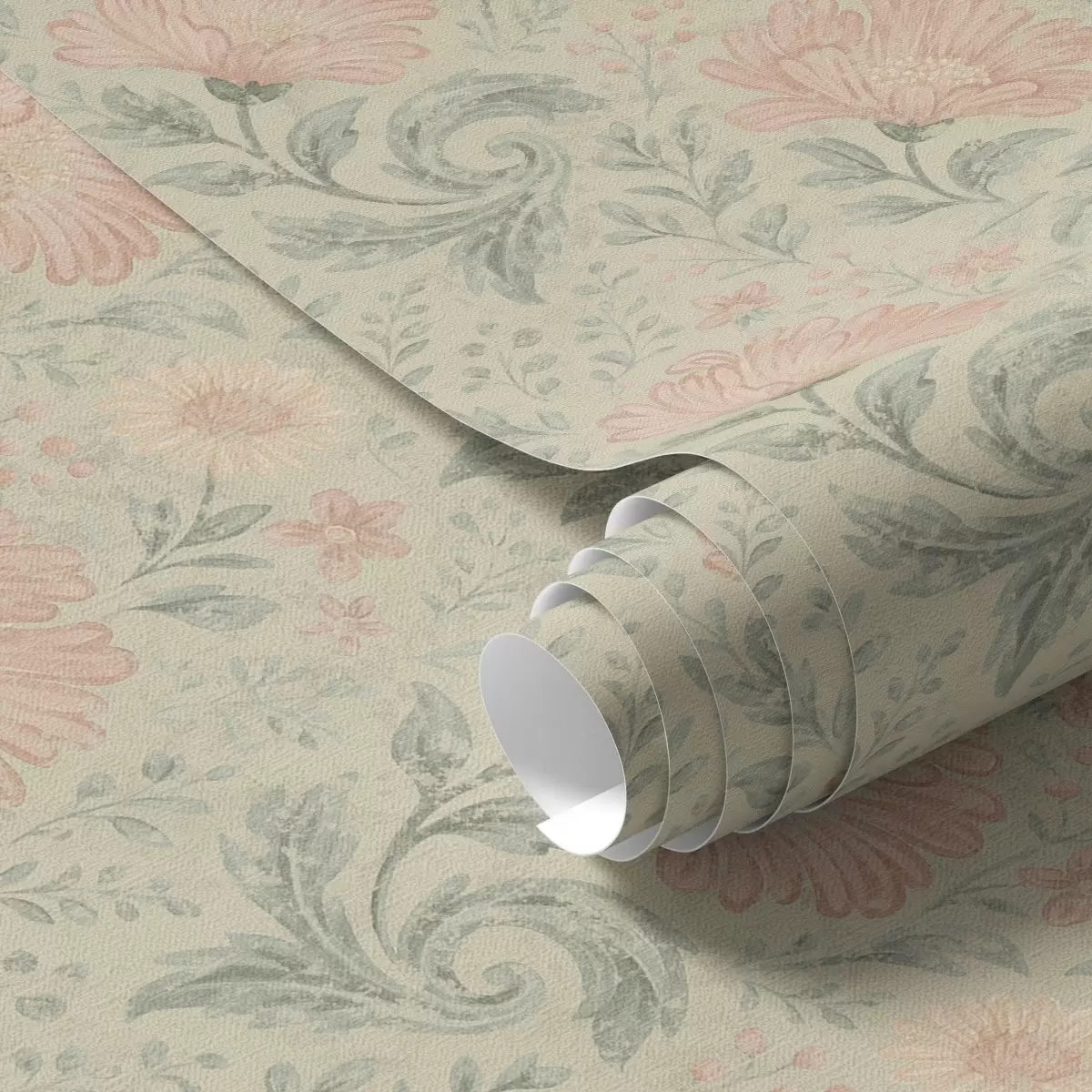 Ταπετσαρία Vintage μεγάλα άνθη ροδάκινου με φύλλα φασκόμηλου Nr. a00580